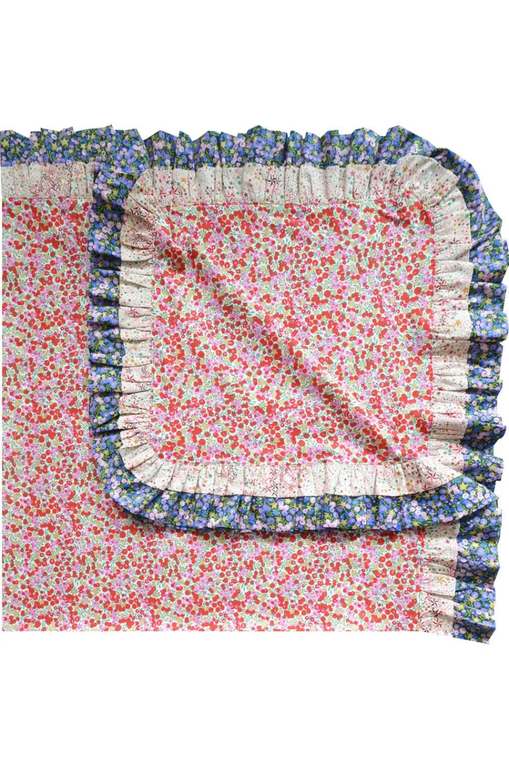 Made with 100% Liberty Tana Lawn® Cotton. Thread count 240. Features an abundant double ruffle edge. Made using three contrasting and complementary Liberty prints.