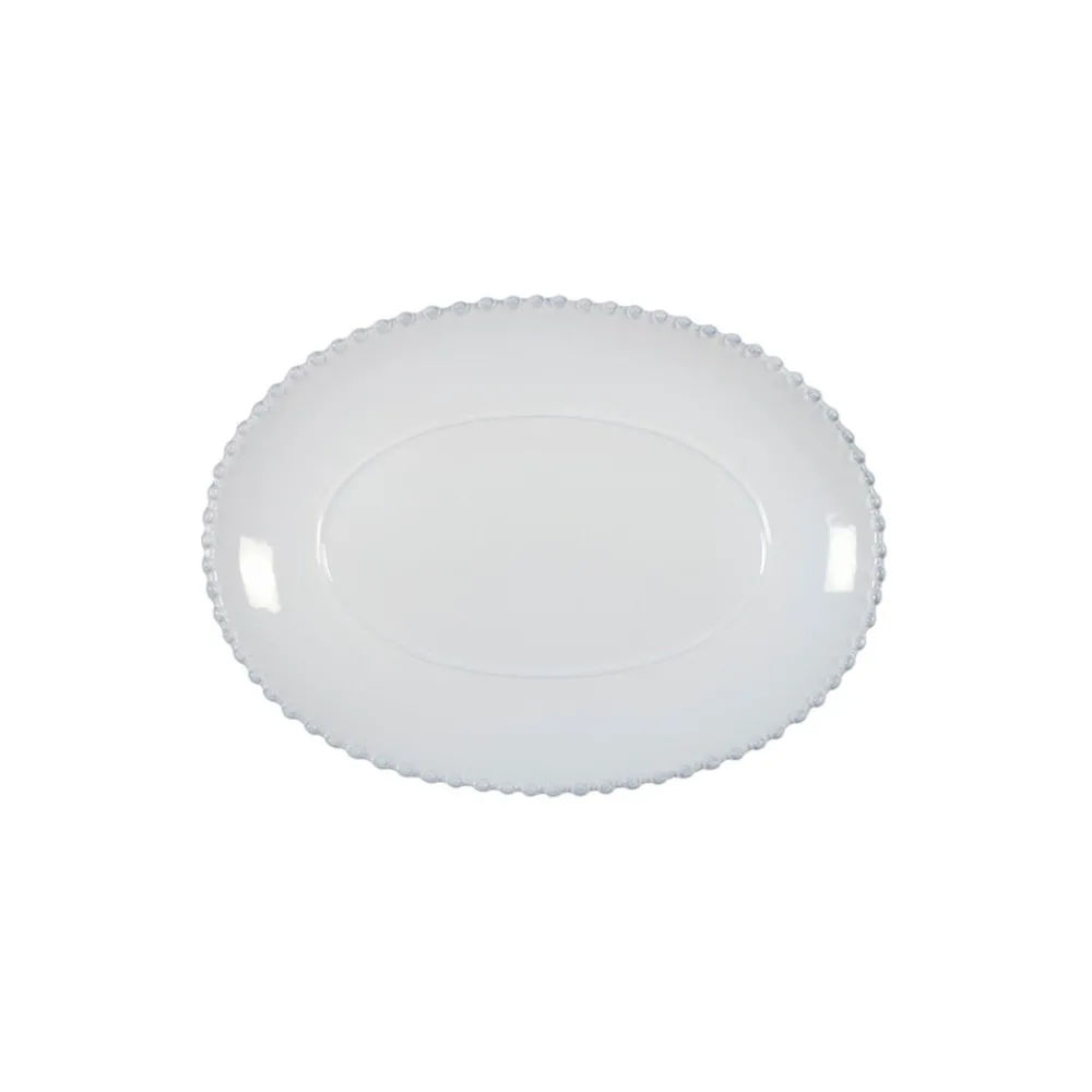 Costa Nova originated in a small Portuguese fishing village by the Atlantic Ocean. Carrying the name and heritage of Portugal worldwide, the brand creates fine stoneware collections that blend design, quality, and exceptional ceramic craftsmanship. The Pearl Collection Oval Platter 13″ in White offers a refined serving surface with softly rounded contours and signature beaded detailing, bringing classic European charm to everyday gatherings and formal occasions alike.