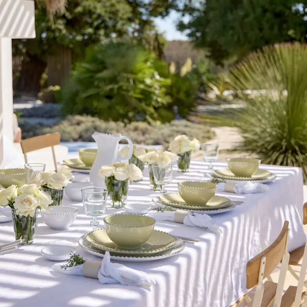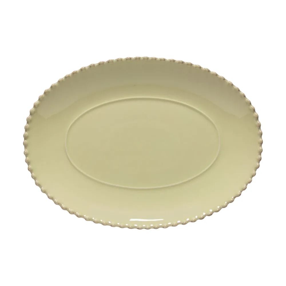 Costa Nova originated in a small Portuguese fishing village by the Atlantic Ocean. Carrying the name and heritage of Portugal worldwide, the brand creates fine stoneware collections that blend design, quality, and exceptional ceramic craftsmanship. The Pearl Collection Oval Platter 14″ in Lilly Green offers a refined serving surface with softly rounded contours and signature beaded detailing, bringing classic European charm to everyday gatherings and formal occasions alike.