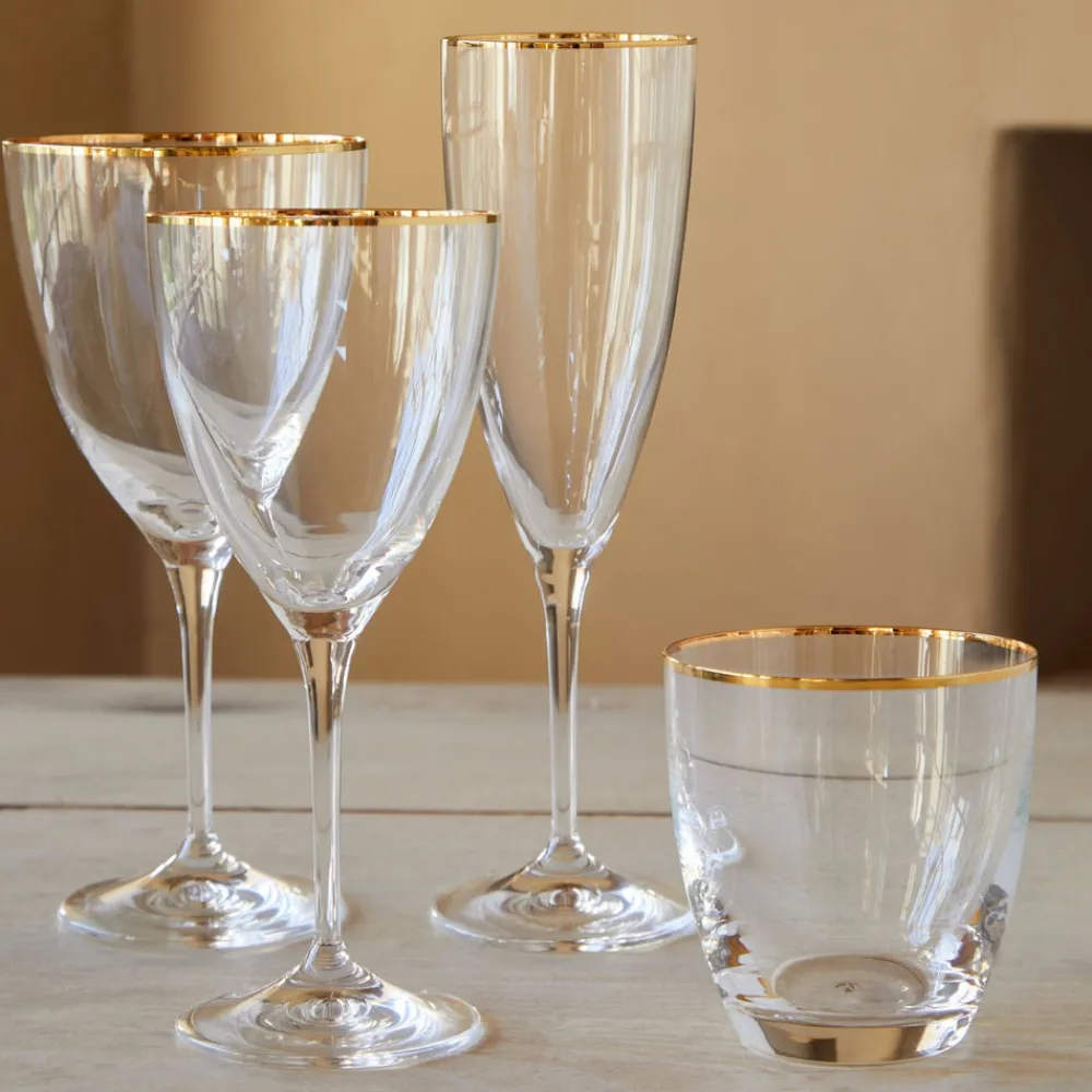 Costa Nova originated in a small Portuguese fishing village by the Atlantic Ocean. Carrying the name and heritage of Portugal worldwide, the brand creates fine stoneware and glassware collections that blend design, quality, and exceptional craftsmanship. The Sensa Collection Flutes 8 oz in Golden Rim, Set of 6 offers a timeless silhouette ideal for sparkling wine and celebratory toasts. Crafted in Europe from lead- and cadmium-free crystalline glass, each flute is finished with a cut rim for a refined feel and exceptional clarity.