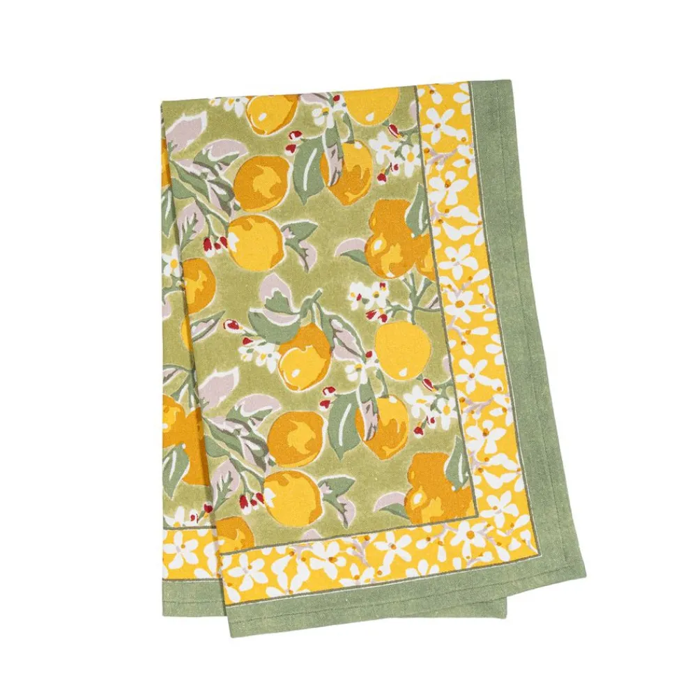 Idyllic landscapes, sumptuous colors, and the vibrant beauty of Southern France describes Couleur Nature. This brand of hand-painted table linens aims to bring a Provençal sense of effortlessness, rich culture, and joie de vivre to your life and home—no matter where you live. Add a touch of French elegance to your kitchen or dining room with the Citron Tea Towels in Vert & Yellow, Set of 3. These vibrant tea towels are handcrafted from a luxurious blend of linen and cotton, offering both durability and timeless style. Featuring a lively citrus design inspired by zesty lemons and blooming lemon blossoms, they bring the essence of citrus orchards right into your home. Available in three charming colors, these tea towels are as practical as they are beautiful. Hand-wrapped for a personal touch, the tea towels combine French flair with effortless upkeep, making them the ideal addition to your kitchen or dining room