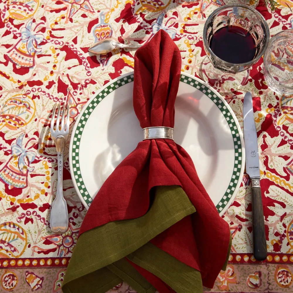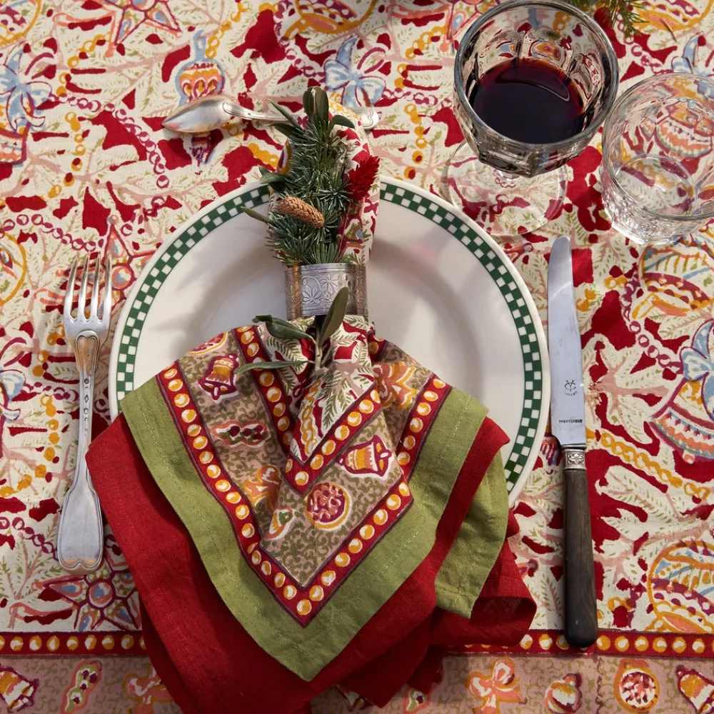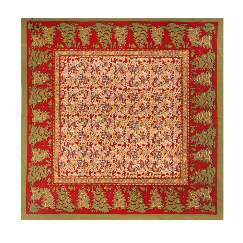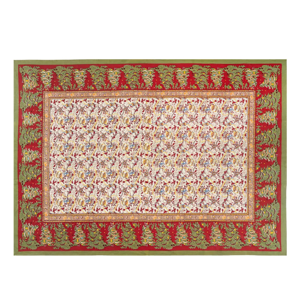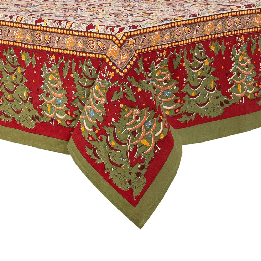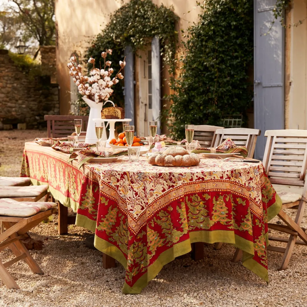 Idyllic landscapes, sumptuous colors, and the vibrant beauty of Southern France describes Couleur Nature. This brand of hand-painted table linens aims to bring a Provençal sense of effortlessness, rich culture, and joie de vivre to your life and home—no matter where you live. The French Tablecloth Noel features a feast for the eyes with a sense of casual festivity and tradition. Designed in a holiday-themed pattern, this high-quality piece is a must-have for dine-in memories. An elegant addition to any tablescape.