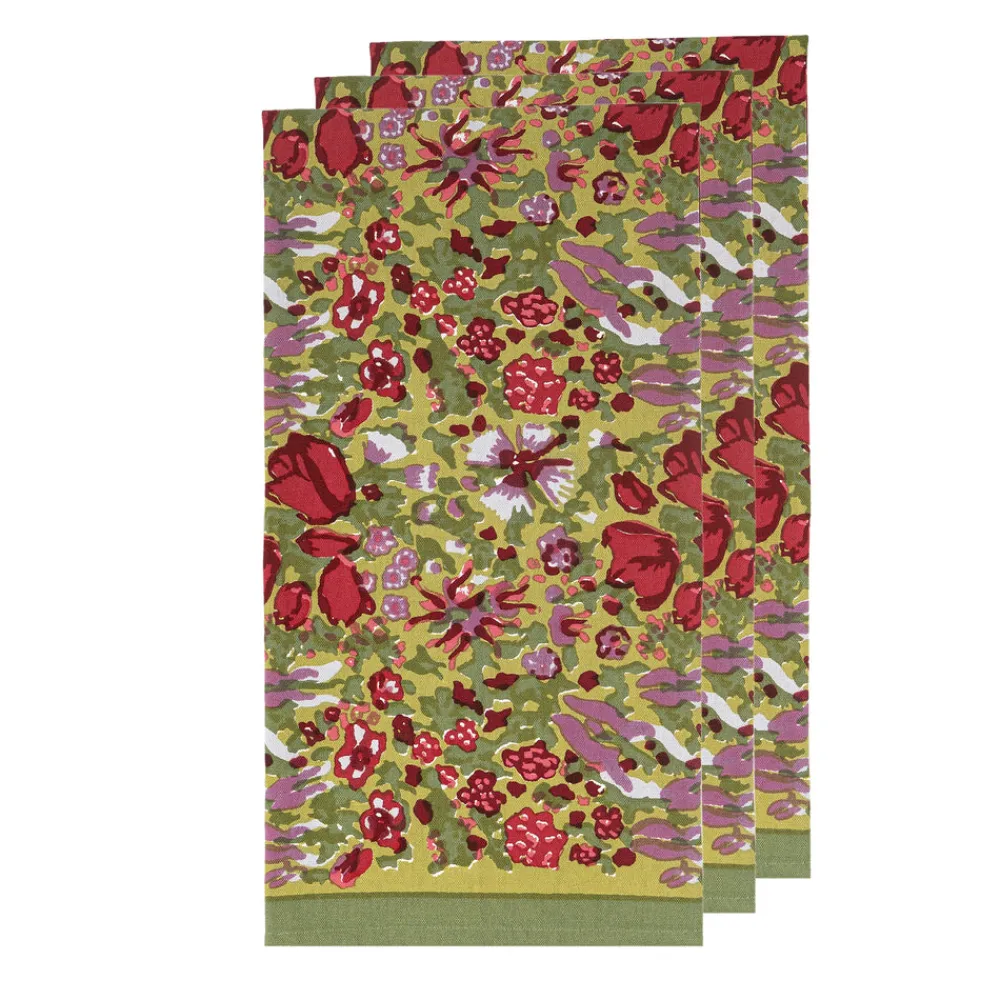 Idyllic landscapes, sumptuous colors, and the vibrant beauty of Southern France describes Couleur Nature. This brand of hand-painted table linens aims to bring a Provençal sense of effortlessness, rich culture, and joie de vivre to your life and home—no matter where you live. The Jardin Tea Towels Red & Green , Set of 3 features a lively pattern with rich, Provence-inspired colors. Delightful and bold, it’s an elegant addition to any kitchen, picnic, or tablescape.