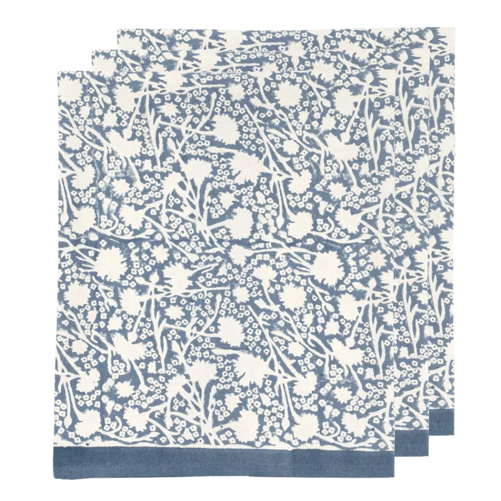 Idyllic landscapes, sumptuous colors, and the vibrant beauty of Southern France describes Couleur Nature. This brand of hand-painted table linens aims to bring a Provençal sense of effortlessness, rich culture, and joie de vivre to your life and home—no matter where you live. The Meadows Tea Towels in Bleu, Set of 3 features a pattern bursting with rich, meadow-inspired colors. Delightful and bold, this set creates a beautiful landscape for all of your delicacies. An elegant addition to any tablescape.