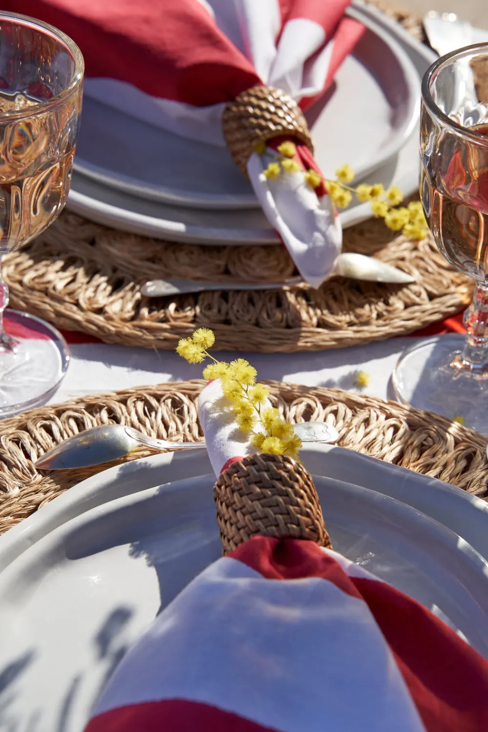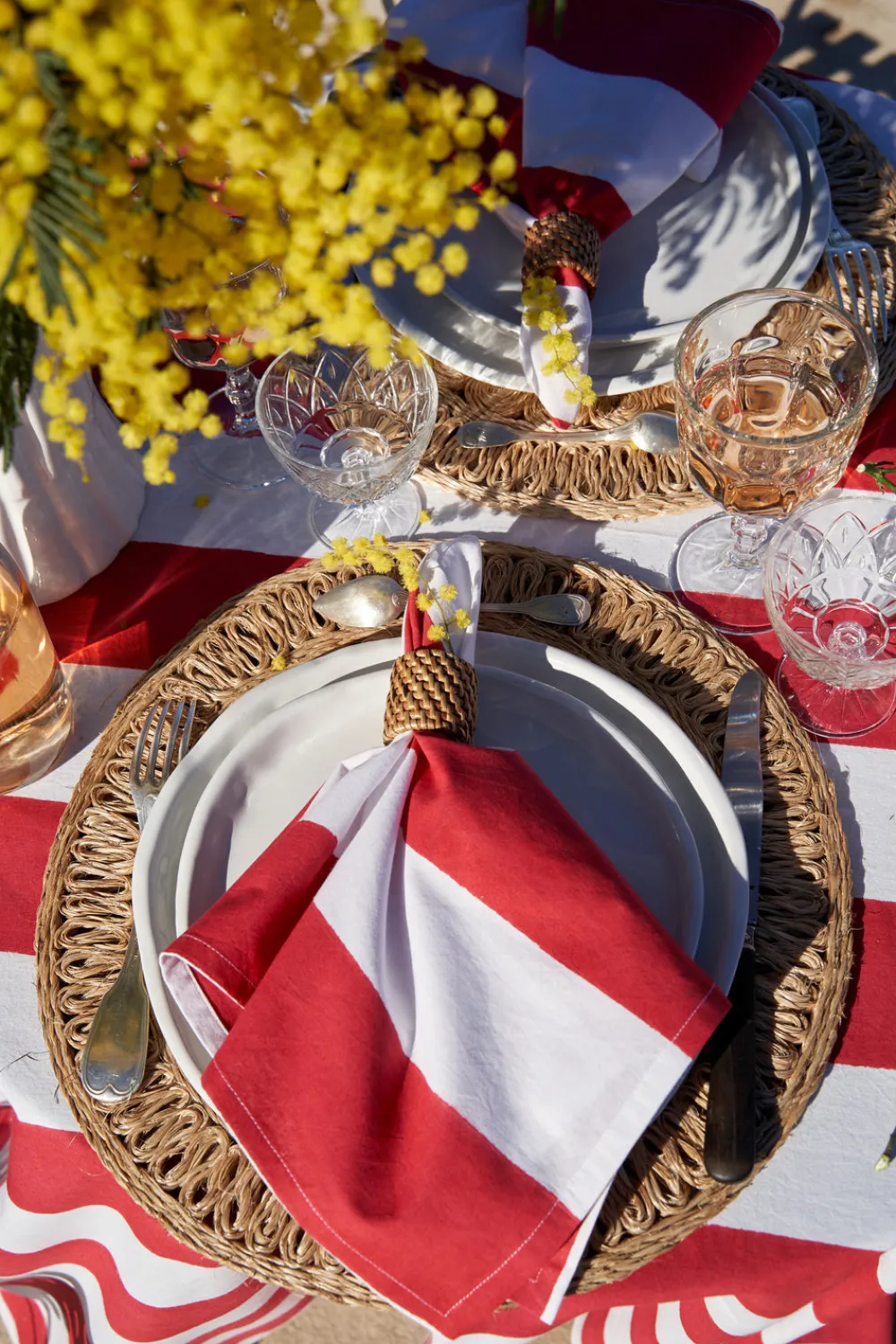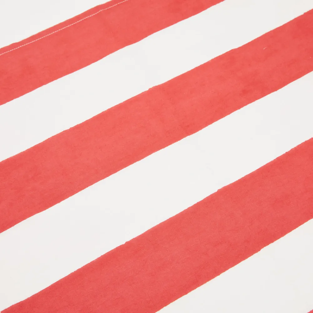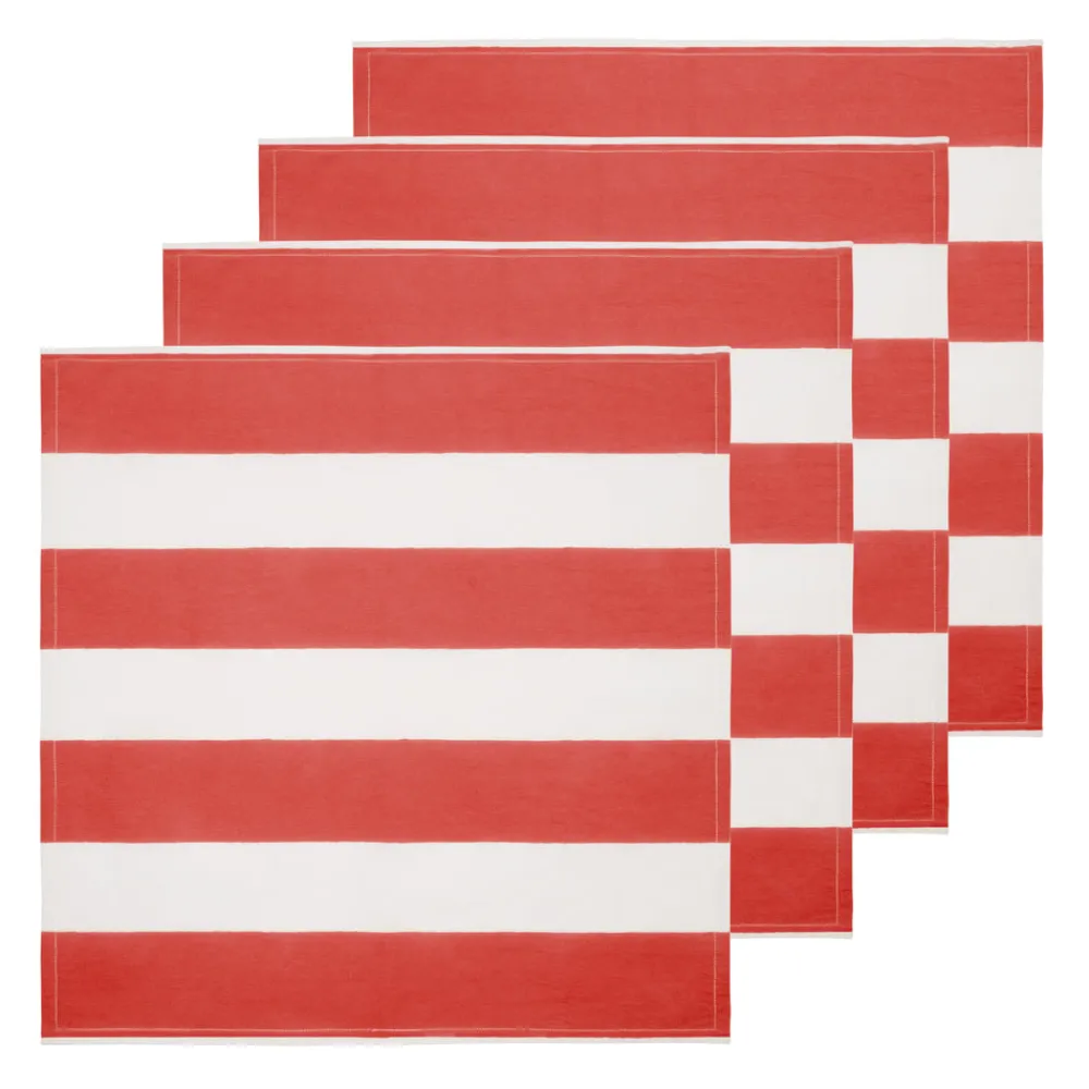 Idyllic landscapes, sumptuous colors, and the vibrant beauty of Southern France describes Couleur Nature. This brand of hand-painted table linens aims to bring a Provençal sense of effortlessness, rich culture, and joie de vivre to your life and home—no matter where you live. Add a touch of effortless French elegance to every meal with the St. Tropez Napkins in Red, Set of 6. Crafted from a heavyweight linen and cotton blend, these napkins feature a wide cabana stripe design that beautifully complements formal, festive, and casual events alike.