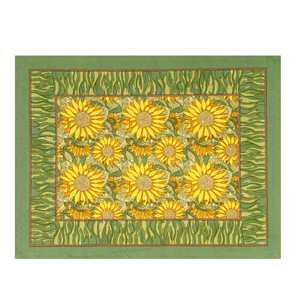 Idyllic landscapes, sumptuous colors, and the vibrant beauty of Southern France describes Couleur Nature. This brand of hand-painted table linens aims to bring a Provençal sense of effortlessness, rich culture, and joie de vivre to your life and home—no matter where you live. With its rich sage and Provencal mustards, the Sunflower Mats in Yellow & Green, Set of 6 dazzles on any table. Add a bit of the French Countryside to your home with this fine linen collection. Fine French table linens, hand-printed, these table placemats are a great way to refresh your table, adding color and vibrancy to every day or formal settings.