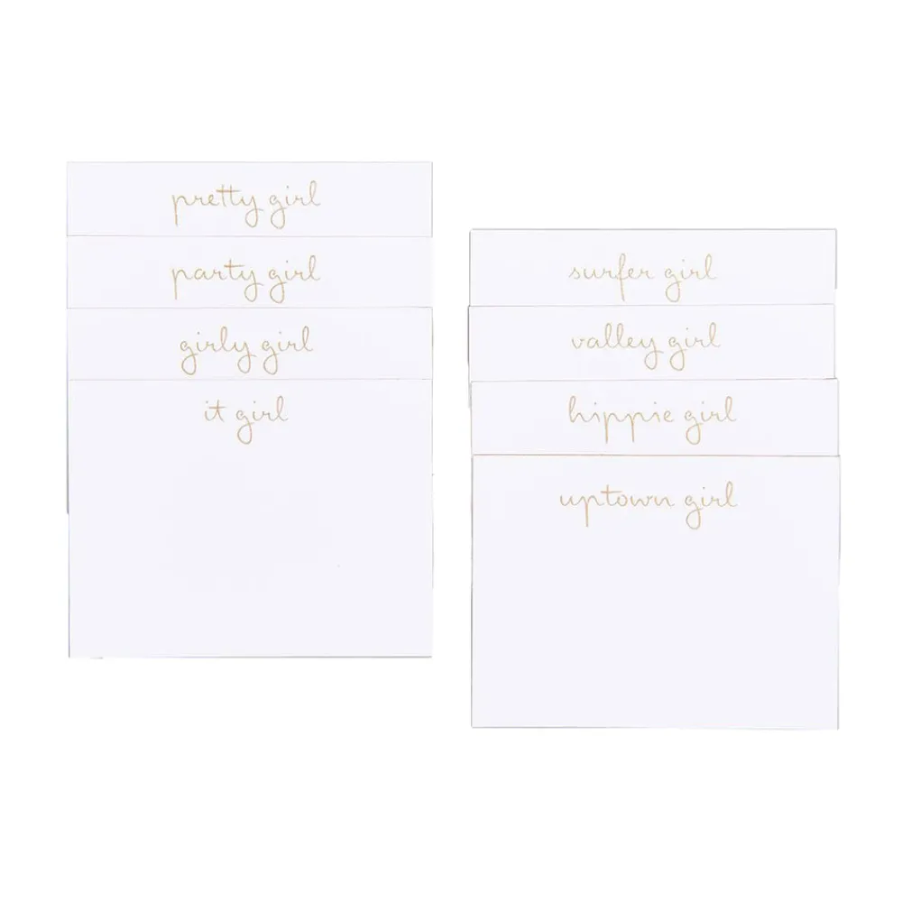 Who doesn’t love girls night? Start the evening with a bang thanks to these individualized Girls Night Place Cards. Engraved in gold ink with eight unique monikers, there’s one for each one of your gal pals. Just pour the rosé and prepare for an evening of love and laughter.