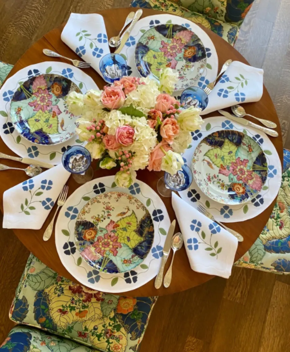 Elizabeth Lake believes in buying what you love—and what’s built to last. Her linens are meant to be used regularly because the goal is always to celebrate often and pass down the good stuff. Every tabletop piece in the collection incorporates centuries-old techniques but is made for the modern host or hostess. Inspired by Matisse’s 1953 Large Decoration with Masks and crafted on a fine Belgian linen base, the Matisse Floral Placemats are a lively blue-hued addition to both everyday and special occasion tablescapes.