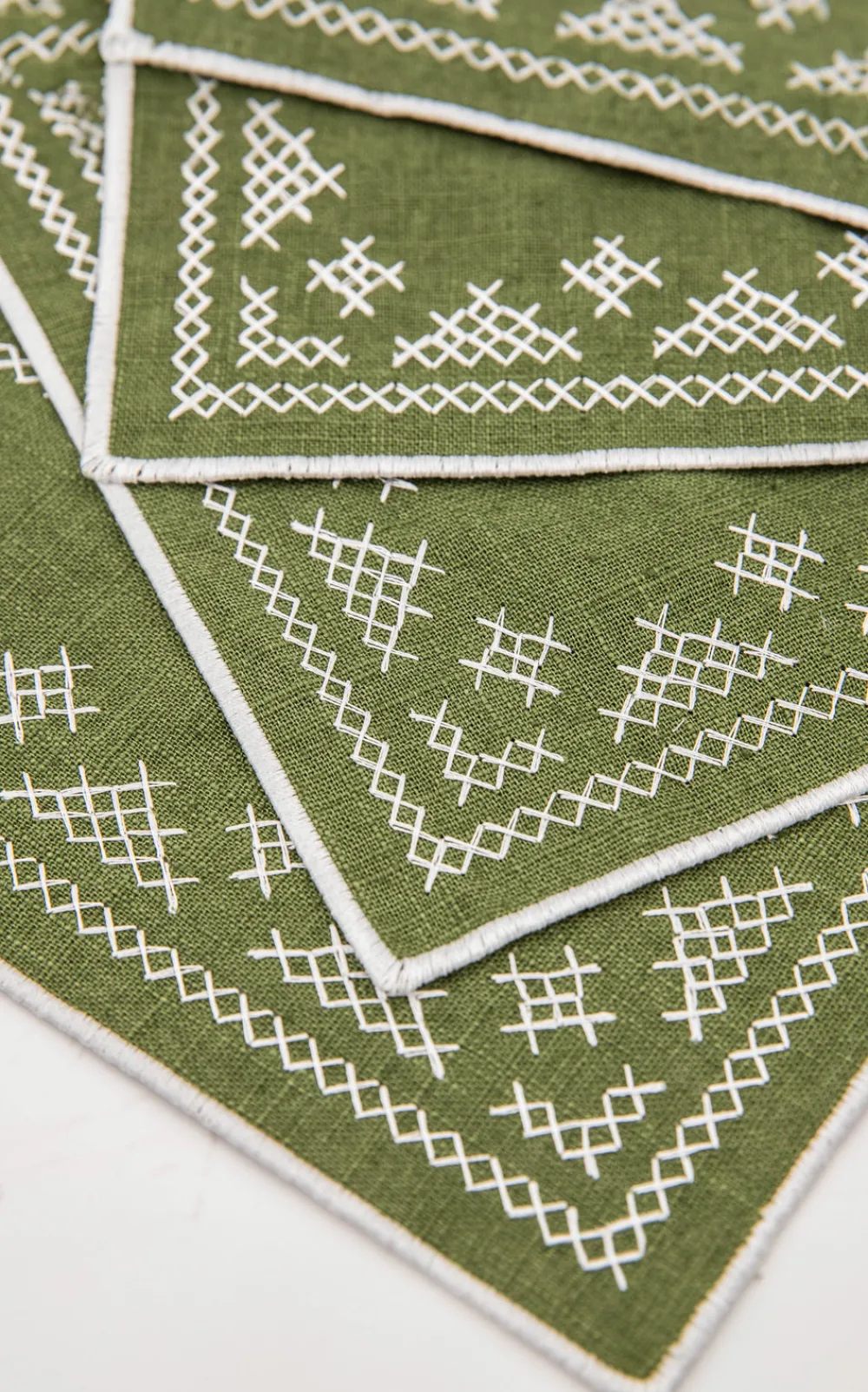 Esencial Hogar’s founder, Celina Wright, wants every gathering around the table a memorable one. What began as a small online shop based in El Salvador offering globally sourced treasures developed into its own collection of table linens —with linens sourced from India and finished by hand in El Salvador—designed to elevate the everyday. The Pedralbes Placemats in Olive â Set of 4 feature a delicate cross-stitch border, inspired by the embroidery in our signature Geranio tablecloth. Designed for everyday use, they add a thoughtful touch and a pop of color to any table.