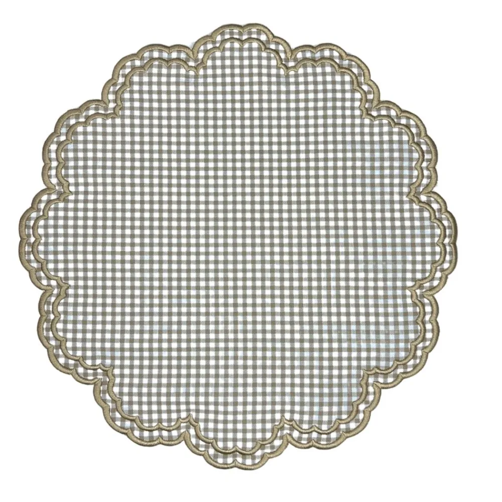 Swiss linen, fine cotton and tasteful refinement define Flying Sheep Country’s linens and tabletop items. Founded by two sisters who spent their youth spotting sheep in the English countryside, the brand celebrates both luxury and whimsy in its vibrant prints, fine embroidery and traditional artisanship. Elevate your table with the delightful Bettina Placemat in Wheat Gingham, Set of 4, beautifully adorned with wavy scalloped embroidery. This timeless design brings charm to every dining occasion.