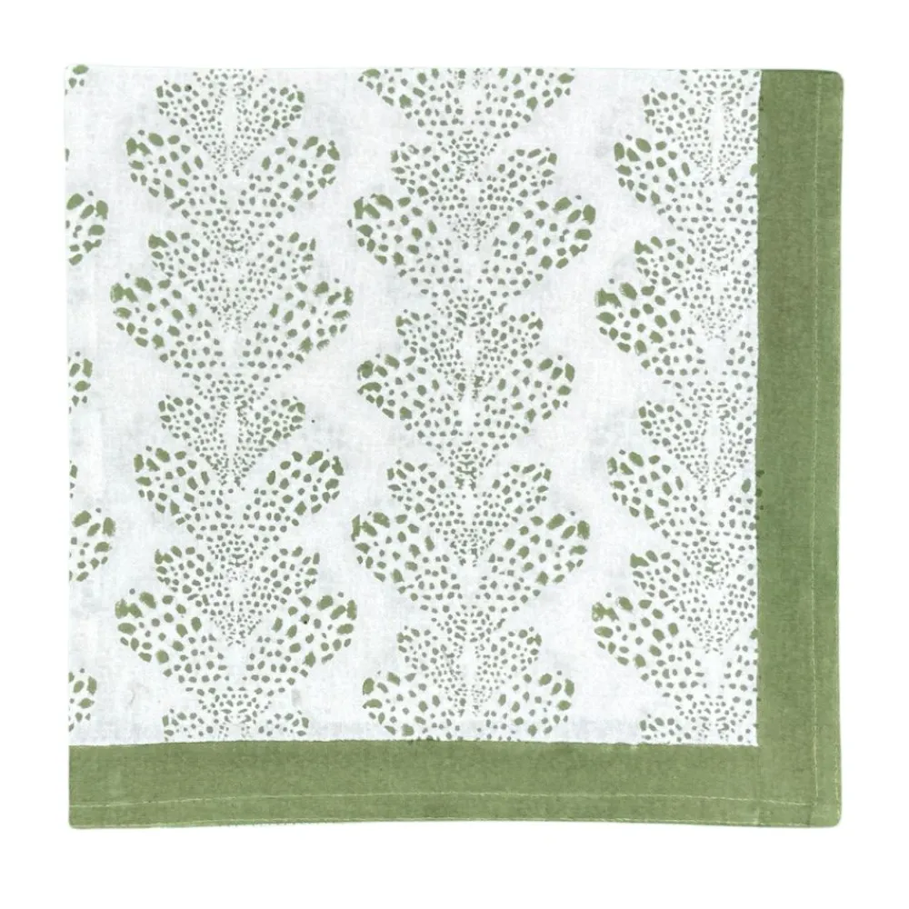 Swiss linen, fine cotton and tasteful refinement define Flying Sheep Country linens and tabletop items. Founded by two sisters who spent their youth spotting sheep in the English countryside, the brand celebrates both luxury and whimsy in its vibrant prints, fine embroidery and traditional artisanship. In The Kelli Napkin in Sage, Set of 4 the brand partners with artist Kristen Leigh to deliver a pattern‚block printed by master artisans in India that brings together classic design with the playfulness of dots.