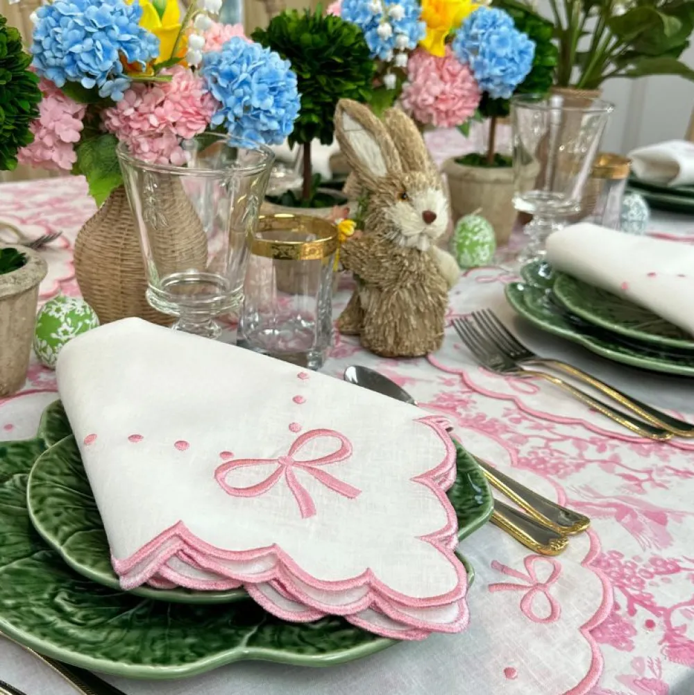 Swiss linen, fine cotton and tasteful refinement define Flying Sheep Country’s linens and tabletop items. Founded by two sisters who spent their youth spotting sheep in the English countryside, the brand celebrates both luxury and whimsy in its vibrant prints, fine embroidery and traditional artisanship. Articulated with a classic pattern of fauna in toile, the Toile de Jouy Birds Pink Tablecloth adds a welcome dose of vivd color and elegance to any table.