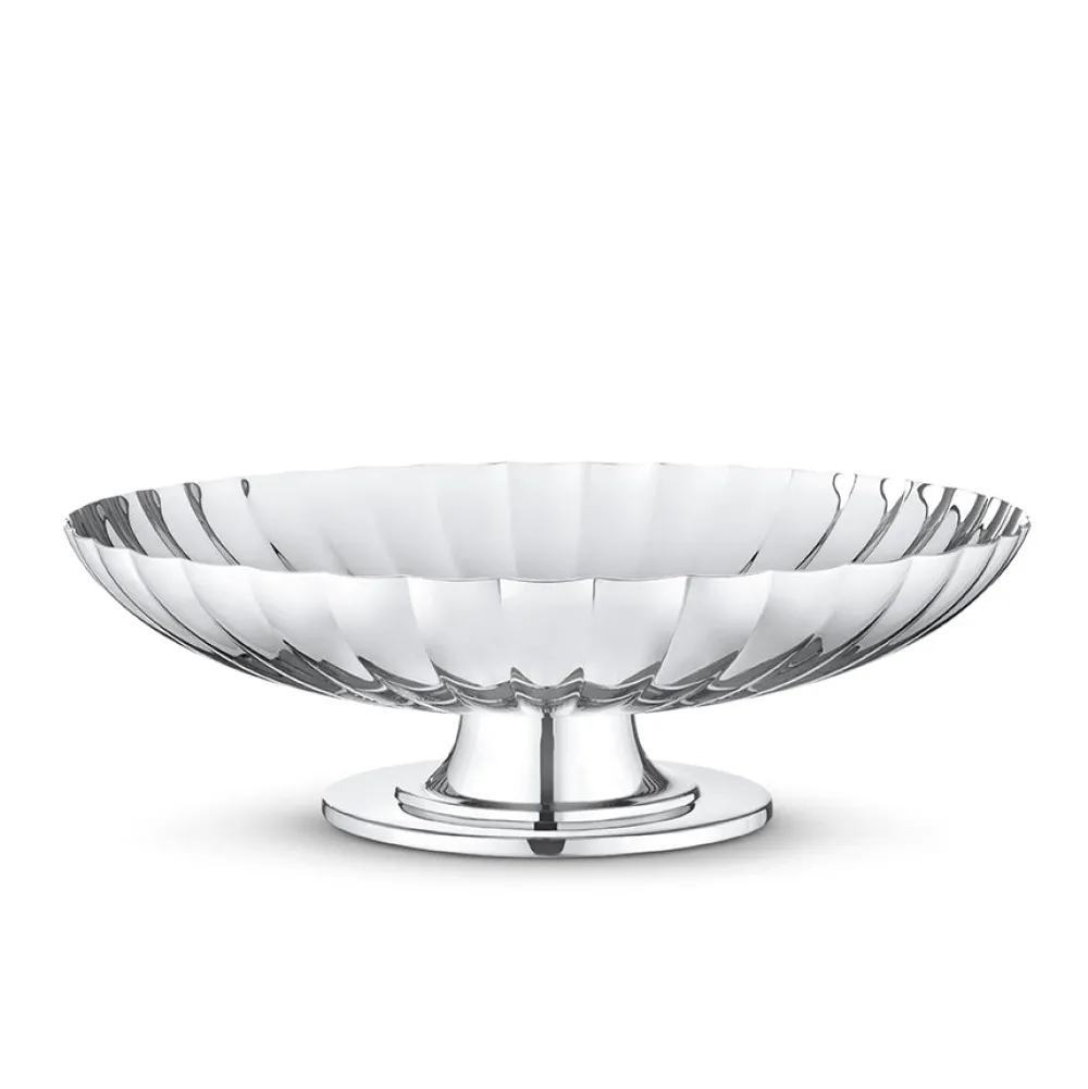For over a century, Georg Jensen has developed jewelry, silverware, and home decor with purposeful, timeless, and functional beauty in mind. Rooted in Scandinavia, and inspired by the lines of Art Nouveau, the brand innovates, sustainable, unmistakable design with a distinctive vigor and unmatched quality. Inspired by original silver pieces created by Sigvard Bernadottein the 1930s, this namesake collection boasts elegantly ridged surfaces. Taken from one of Bernadottein’s original candlestick designs, the Bernadotte Dish On Stand is ideal as a centrepiece on a table, or perhaps holding fruit or bread.