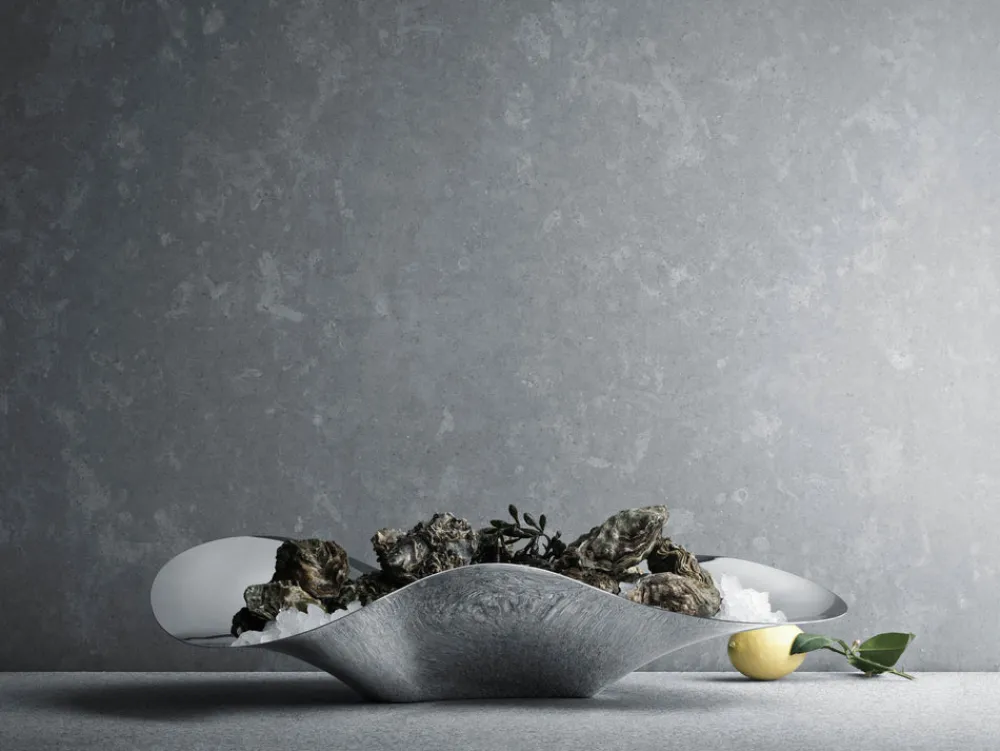 For over a century, Georg Jensen has developed jewelry, silverware, and home decor with purposeful, timeless, and functional beauty in mind. Rooted in Scandinavia, and inspired by the lines of Art Nouveau, the brand innovates, sustainable, unmistakable design with a distinctive vigor and unmatched quality. Bring some Scandinavian design to your dinner table by serving oysters in this sculptural and avant-garde Indulgence Oyster Tray. The undulating form references the movement of the sea and is sure to be a conversation piece over the hors d’oeuvres.