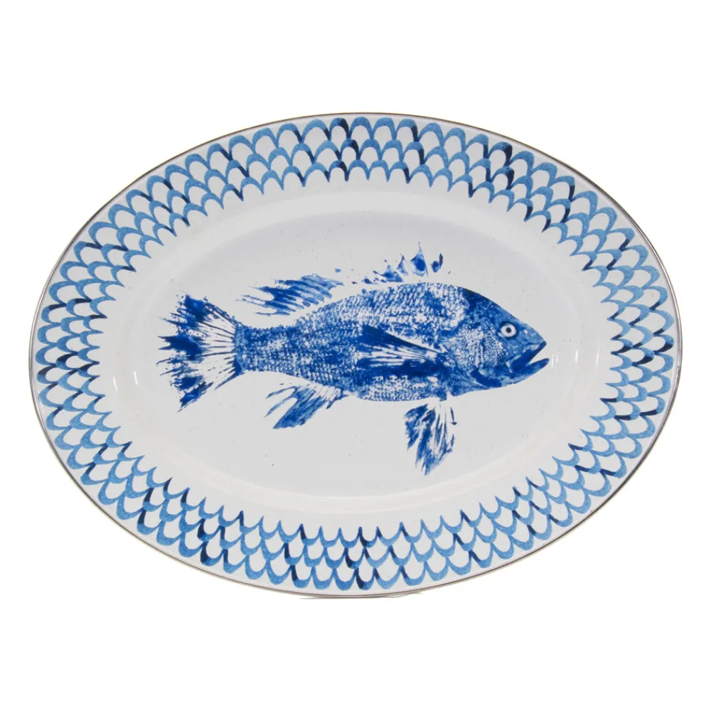 Founder Peggy Hedgpeth created Golden Rabbit to make everyday entertaining feel effortless. With functionality, safety, and durability at the forefront, the brand’s distinctive designs—from traditional enamelware to kid-friendly sets—set it apart in kitchens and dining rooms the world over. Coated porcelain enamel and trimmed with stainless steel to prevent chipping, the Oval Platter in Fish Camp adds a dash of chic maritime style and sophistication to your family style service of meats off the grill, fresh veggies, salads, desserts, or any of your favorite larger items.