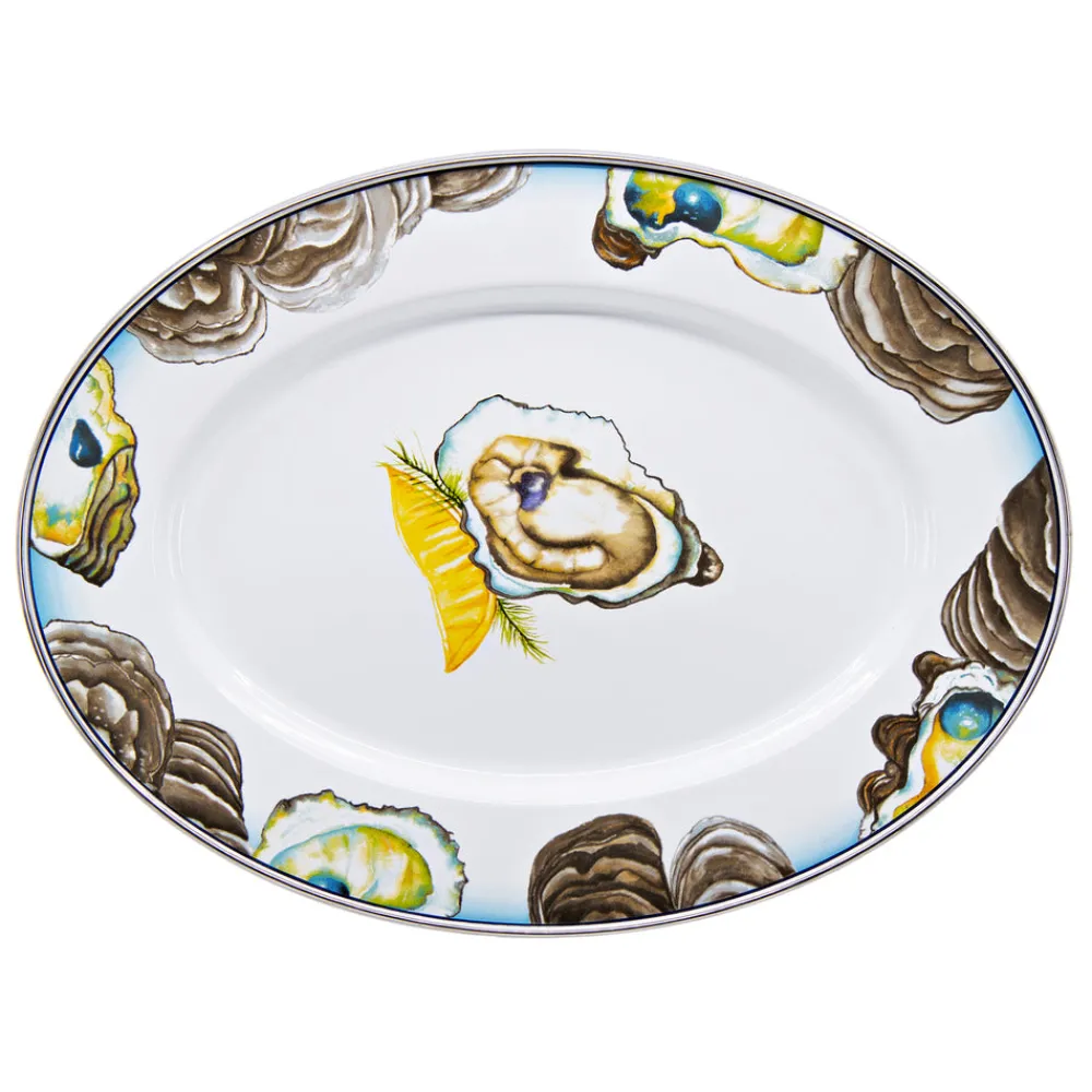 Founder Peggy Hedgpeth created Golden Rabbit to make everyday entertaining feel effortless. With functionality, safety, and durability at the forefront, the brand’s distinctive designs—from traditional enamelware to kid-friendly sets—set it apart in kitchens and dining rooms the world over. Coated porcelain enamel and trimmed with stainless steel to prevent chipping, the Oval Platter in Oyster adds a dash of retro maritime style and sophistication to your family style service of meats off the grill, fresh veggies, salads, desserts, or any of your favorite larger items.