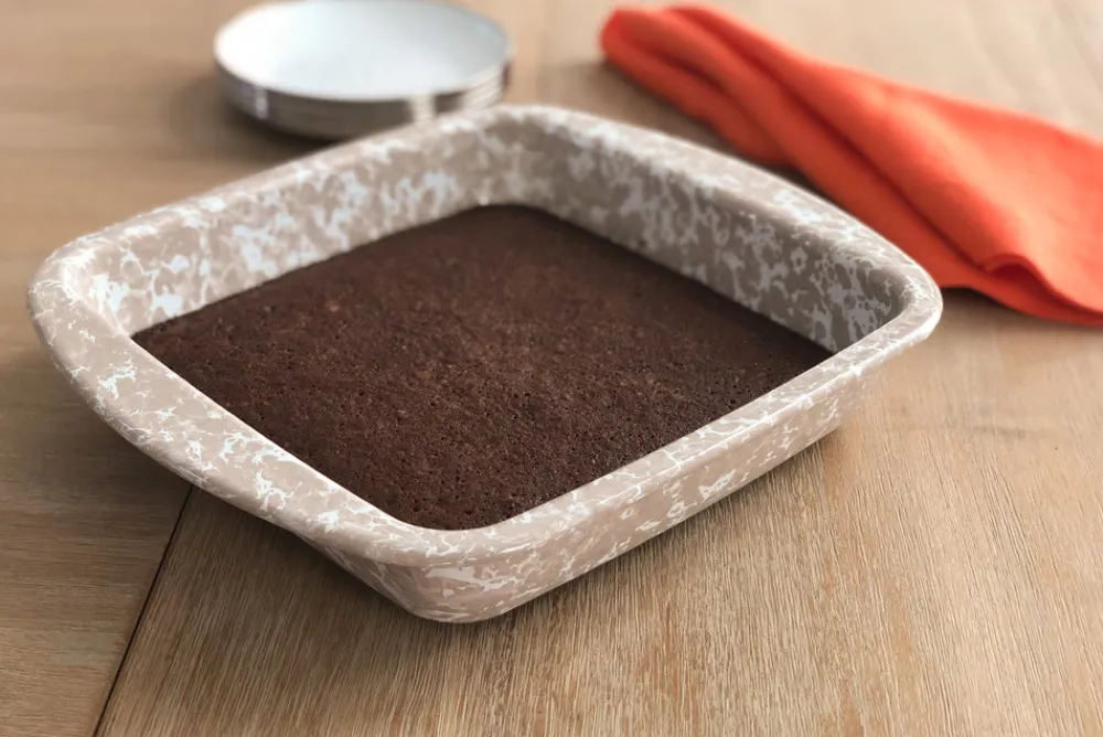 Founder Peggy Hedgpeth created Golden Rabbit to make everyday entertaining feel effortless. With functionality, safety, and durability at the forefront, the brand’s distinctive designs—from traditional enamelware to kid-friendly sets—set it apart in kitchens and dining rooms the world over. Coated porcelain enamel and trimmed with stainless steel to prevent chipping, the Square Trays in Taupe Swirl, Set of 2 adds colorful, retro style to your service of everything from roasts or whole chickens fresh out of the oven, family sized pasts dishes, and desserts.