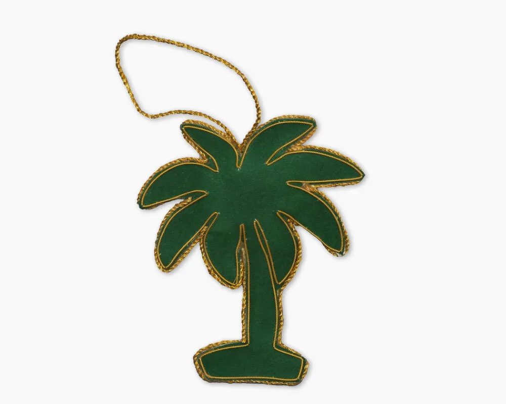 Founded in 2012, Henry Handwork brings joy to the everyday with handmade textiles for the home. Placing tradition and quality at the forefront, the brand resurrects the fading craft of hand-embroidery and needlework, embracing the heritage of finely-wrought European linens. The Palm Tree Ornament is embellished with beads, metallic thread and hand-stitched on velveteen fabric. A dose of paradise, this piece is adds a tropical touch to any tree.