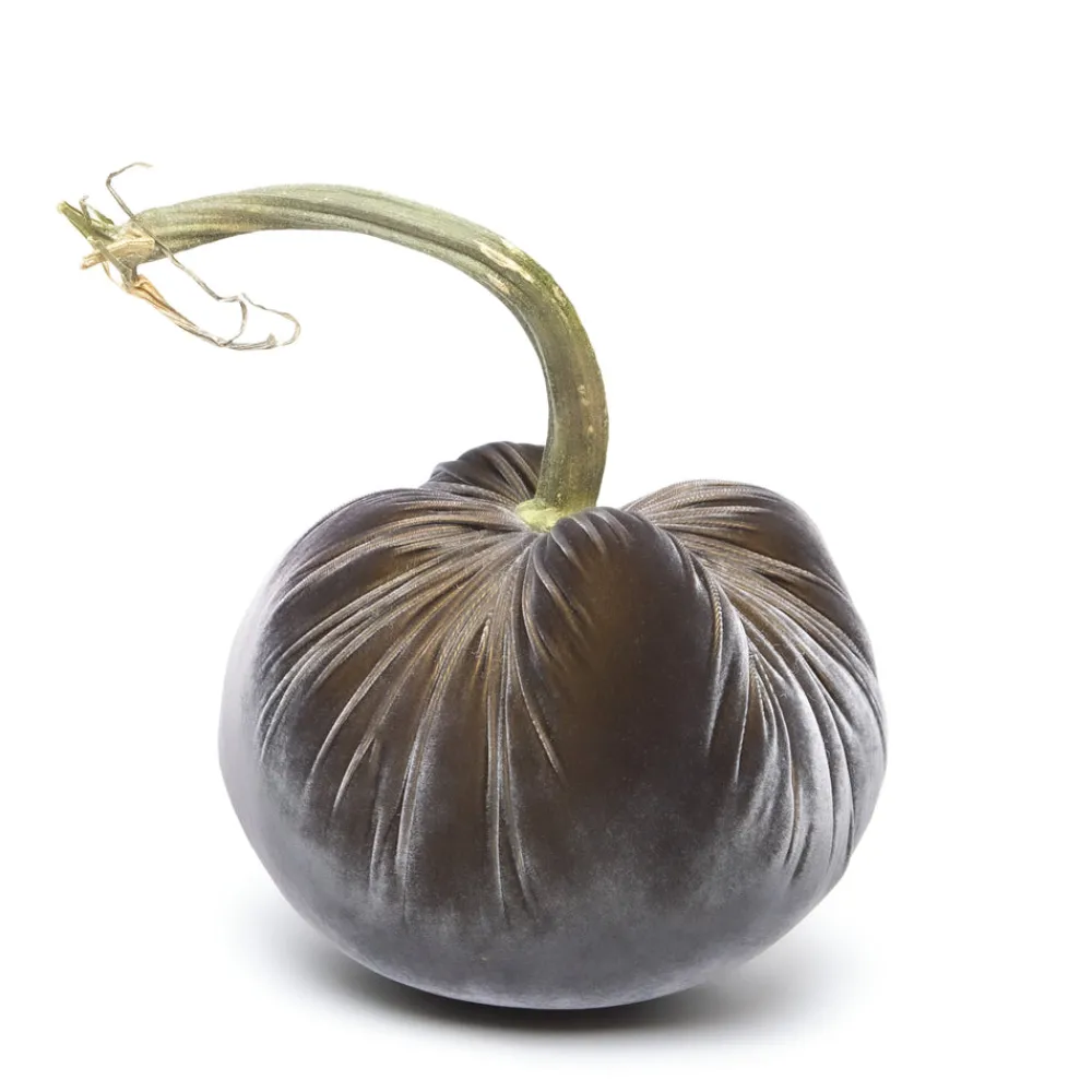 What started as a craft side business by founder Daria Knowles has blossomed into a downright covetable collection of meticulously handcrafted decor pieces made by a team of trained artisans that showcase a touch of nature’s beauty and charm. Enhance your fall tablescape and festive moments with the Graphite Silk Velvet Pumpkin. This autumn-inspired accessory is cut and sewn to order, and finished with a natural stem.