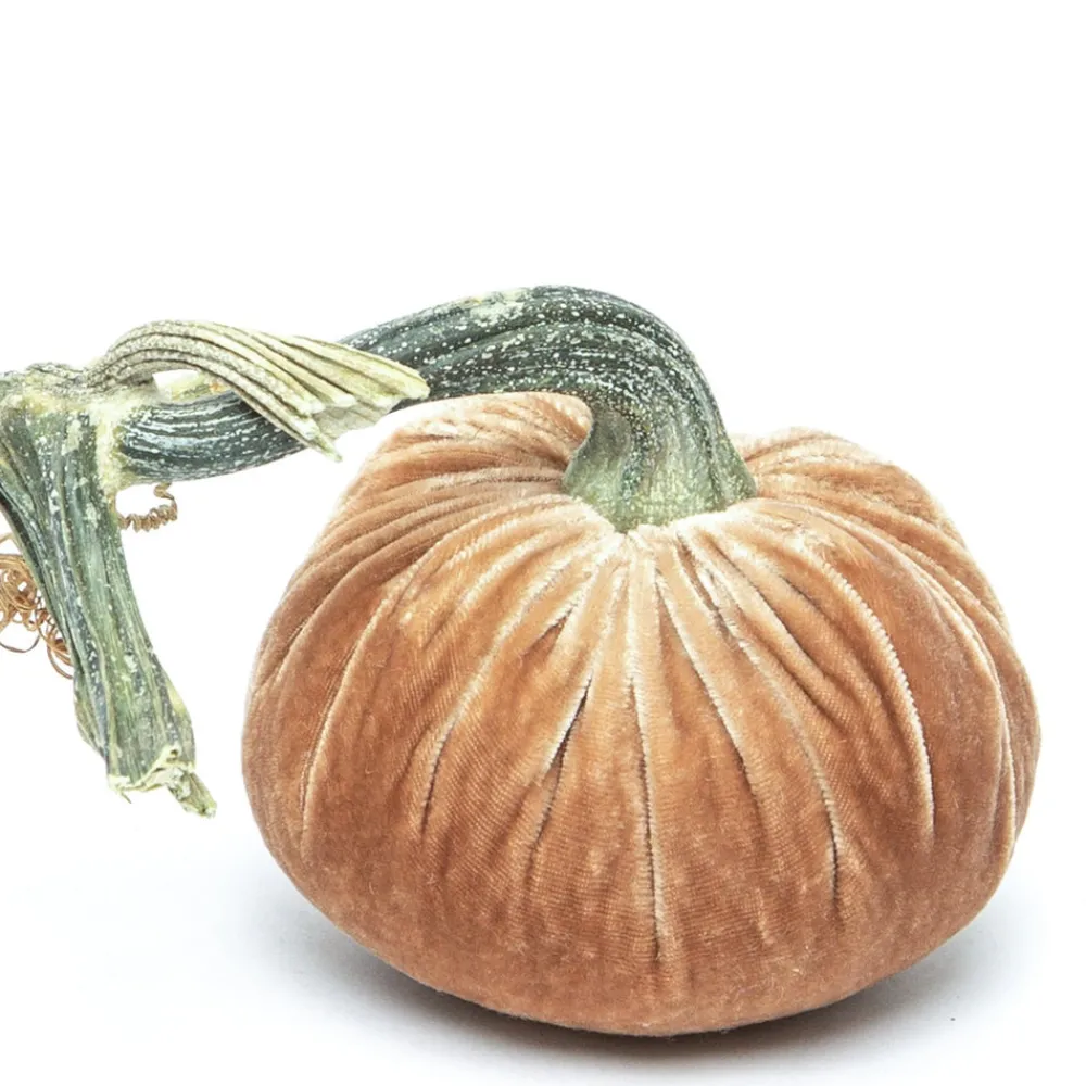 What started as a craft side business by founder Daria Knowles has blossomed into a downright covetable collection of meticulously handcrafted decor pieces made by a team of trained artisans that showcase a touch of nature’s beauty and charm. Enhance your fall tablescape and festive moments with the Latte Silk Velvet Pumpkin. This autumn-inspired accessory is cut and sewn to order, and finished with a natural stem.