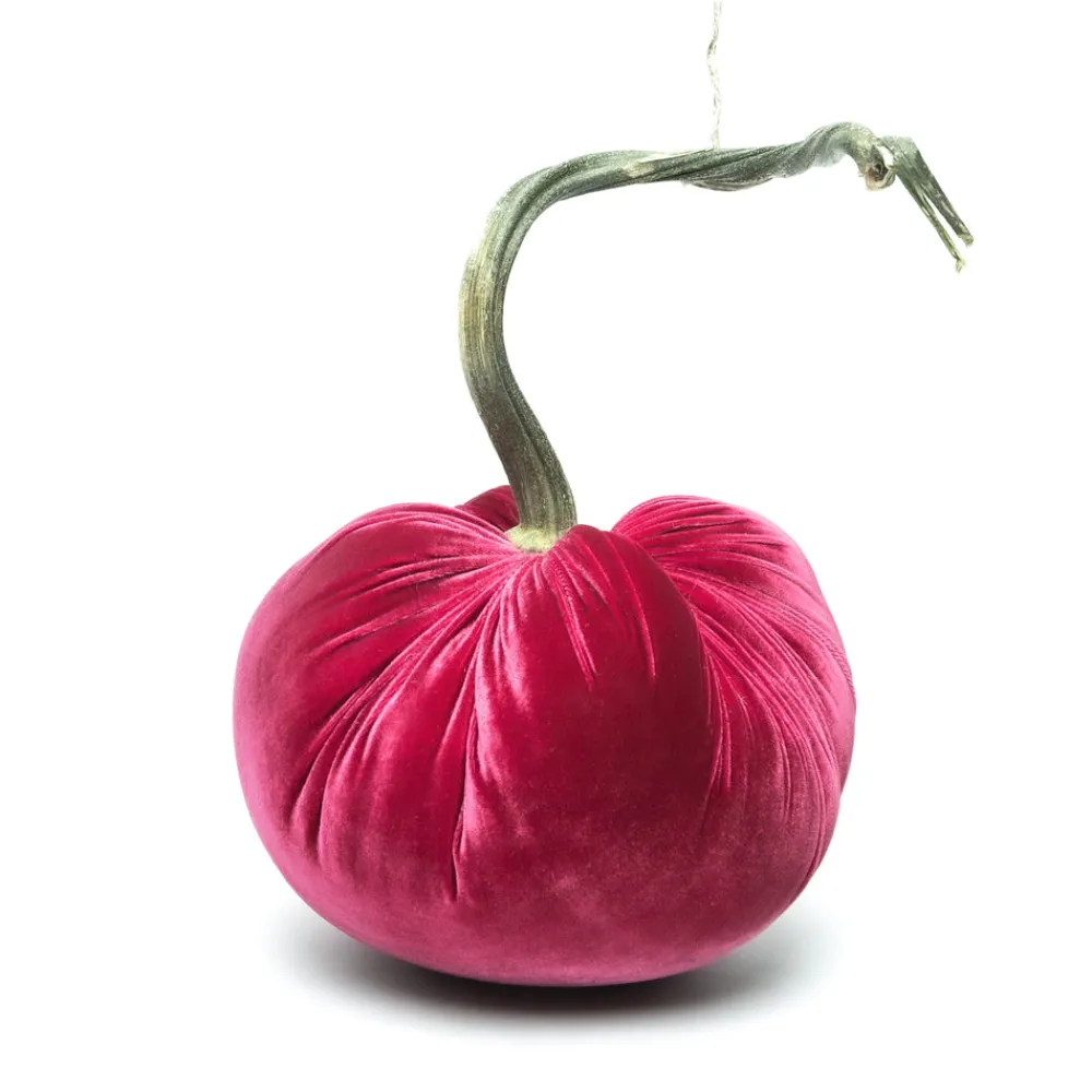What started as a craft side business by founder Daria Knowles has blossomed into a downright covetable collection of meticulously handcrafted decor pieces made by a team of trained artisans that showcase a touch of nature’s beauty and charm. Enhance your fall tablescape and festive moments with the Lipstick Silk Velvet Pumpkin. This autumn-inspired accessory is cut and sewn to order, and finished with a natural stem.