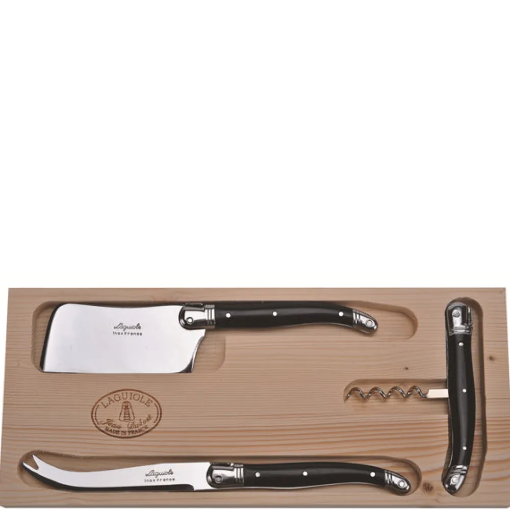 Jean Dubost Laguiole Bar|Flatware|3-Piece Wine & Cheese Set Black