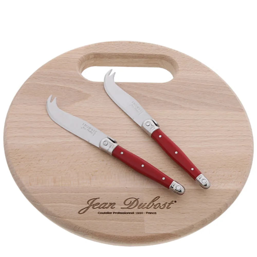 Jean Dubost Laguiole Flatware|2-Piece Cheese Set Red with Board