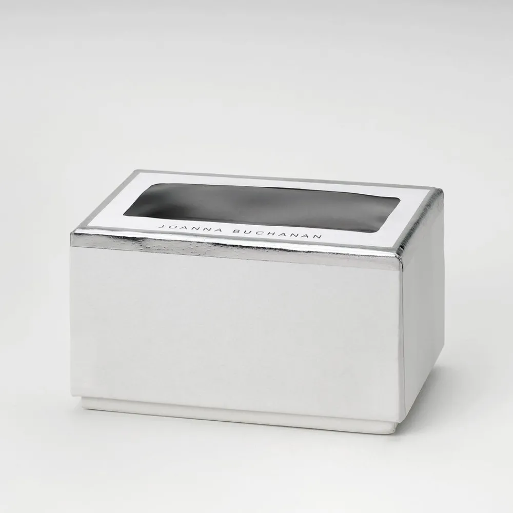 Inspired by her mother’s flare for holiday decorating, Joanna Buchanan has turned her love of travel and knowledge gleaned from twenty years in fashion retail into an eclectic line of tabletop, barware, gifts, and decor. Boasting grey and indigo tones and highlighted by jeweled egdes, the Enamel Bow Skinny Napkin Rings in Navy, Set of Four are a gorgeous accent to any table.