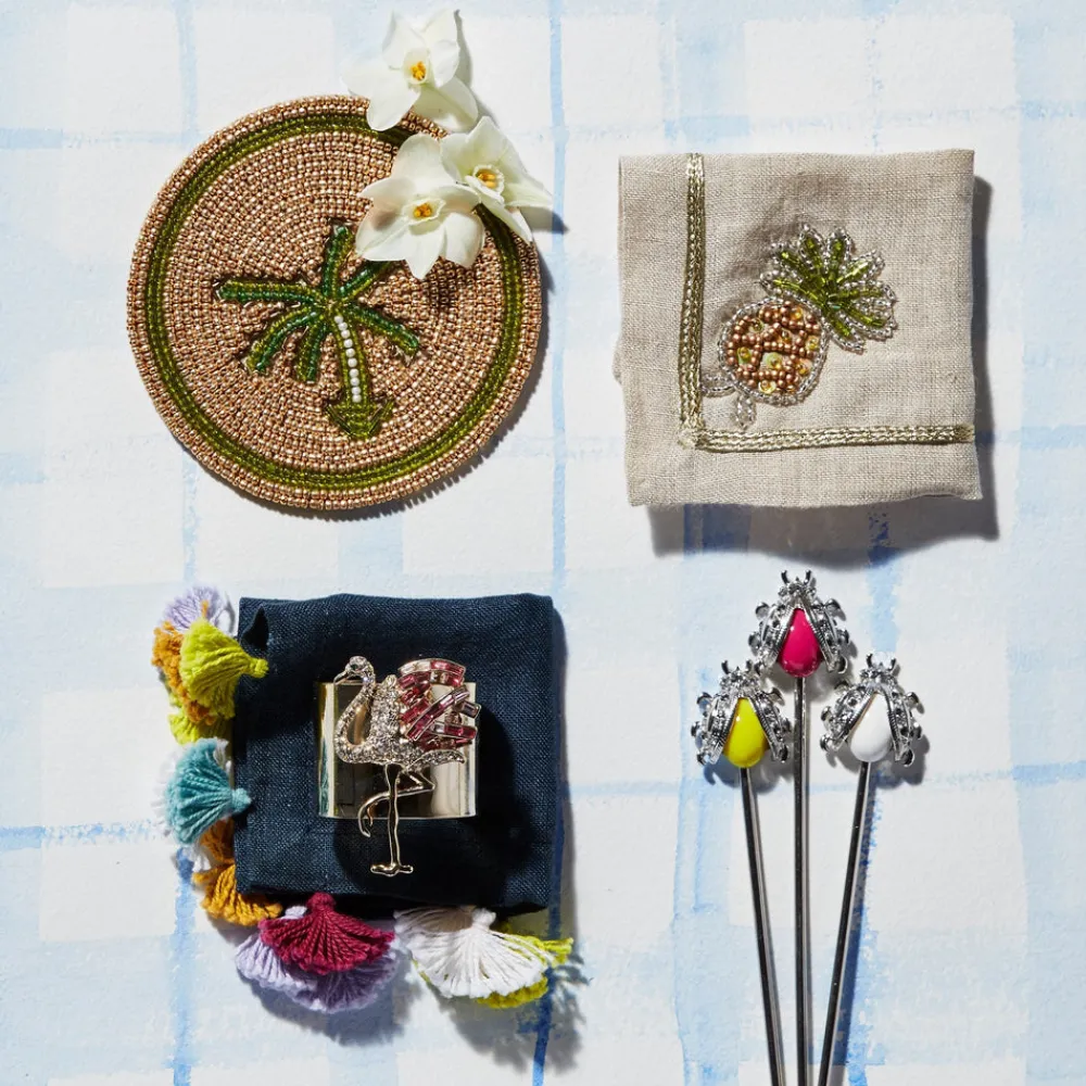 Inspired by her mother’s flare for holiday decorating, Joanna Buchanan has turned her love of travel and knowledge gleaned from twenty years in fashion retail into an eclectic line of tabletop, barware, gifts, and decor. Evoke the glamour of warm weather getaways, and enliven your holiday meals with the Flamingo Napkin Rings, Set of Two, which works with any linens, and is an ideal standout for special dinners.