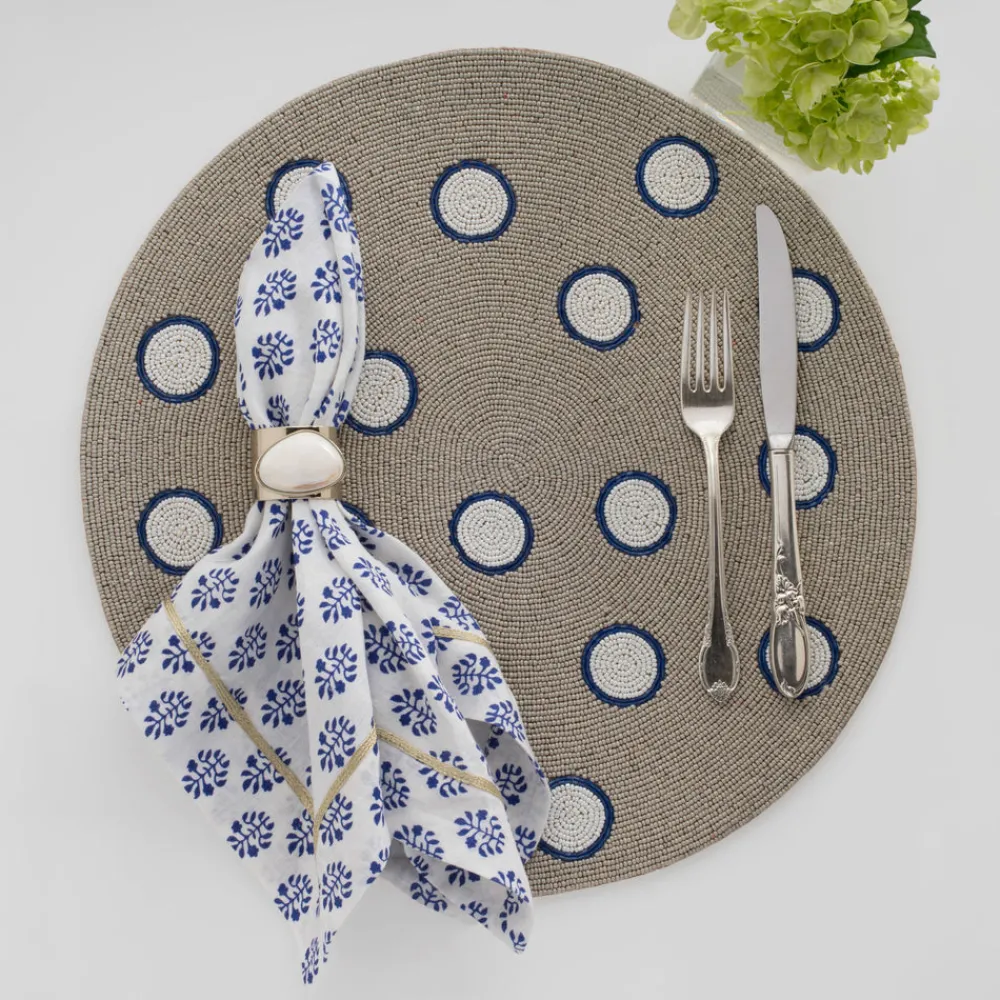 Inspired by her mother’s flare for holiday decorating, Joanna Buchanan has turned her love of travel and knowledge gleaned from twenty years in fashion retail into an eclectic line of tabletop, barware, gifts, and decor. Enliven your holiday meals with the Gilt Edge Shell Napkin Rings, Mother of Pearl, Set of Two which works with any linens, from harvest dinners all the way through New Year’s.