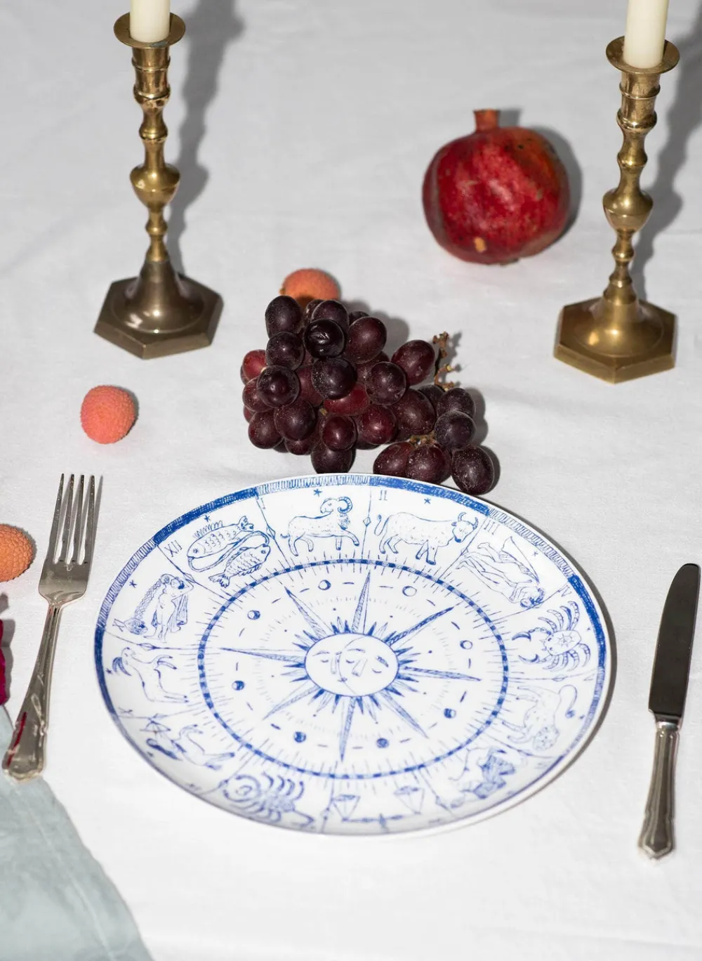 Based in Paris, Josephine Dessine celebrates femininity through whimsical illustrations and romantic, hand-drawn prints. Each piece is a love letter to the everyday, blending poetic storytelling with timeless silhouettes crafted in natural fabrics. Inspired by nostalgia, art, and effortless French charm, Josephine Dessine invites a world where beauty lives in the details. The Zodiac Plate features twelve astrological signs rendered in vivid hues, combining symbolism with signature whimsy. Crafted from silk screen-printed porcelain with a lead-free glaze, it serves as both a decorative accent and a unique dining essential.