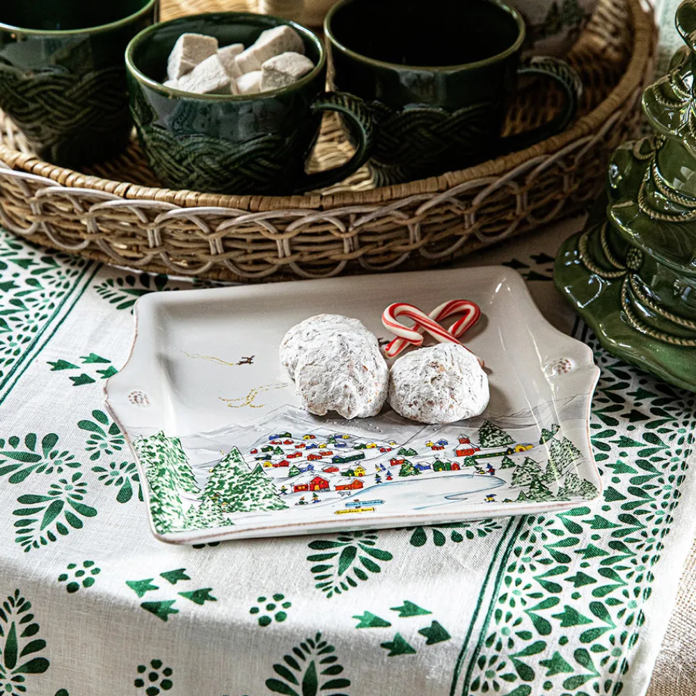 As newlyweds and self-proclaimed romantics, Capucine and David Gooding founded Juliska in 2001 with a small collection of mouth-blown glasses. Today, it’s the tableware and home brand every good hostess needs to know. The Berry & Thread North Pole 10″ Cookie Tray showcases whimsical storybook illustrations of Santa’s village, framed by a scalloped silhouette adorned with Juliska’s signature berries. Ideal for presenting holiday treats, trinkets, or baubles—and perfect for leaving cookies for Santa—it’s a keepsake piece that spreads joy year after year.