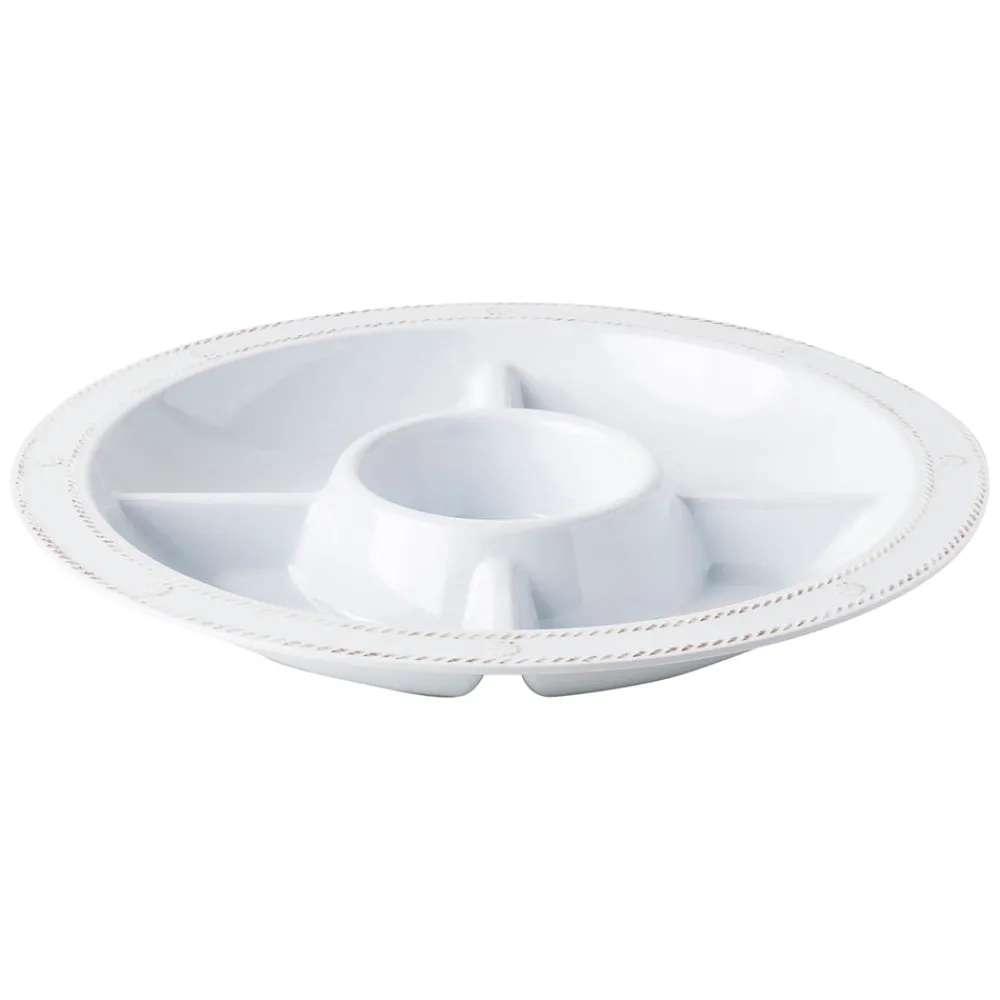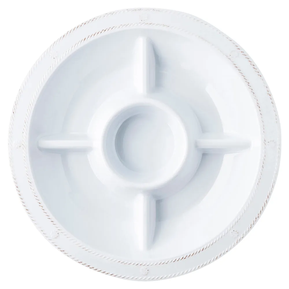 From Juliska’s Al Fresco Collection, durability meets design with their iconic Berry & Thread motif on melamine dinnerware, perfect for the adventurous entertainer. Four divided sections circle one central bowl on this sectioned server, perfect for vegetables and dip, chips and salsa, or a variety of small nibbles.