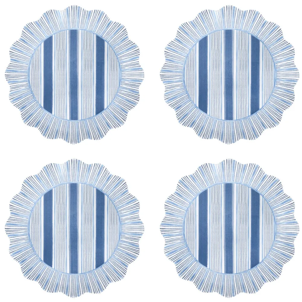 As newlyweds and self-proclaimed romantics, Capucine and David Gooding founded Juliska in 2001 with a small collection of mouth-blown Bohemian glasses. Today, it’s the tableware and home brand every good hostess needs to know. Reminiscent of a sunburst, the Cabana Stripe Melamine Dessert/Salad Plate in Ocean, Set of 4 boasts a radiant ruffle trim in vibrant and happy hues to the classic cabana stripe. This chic and shatterproof plate set makes any tablescape more special, feminine, and fun.