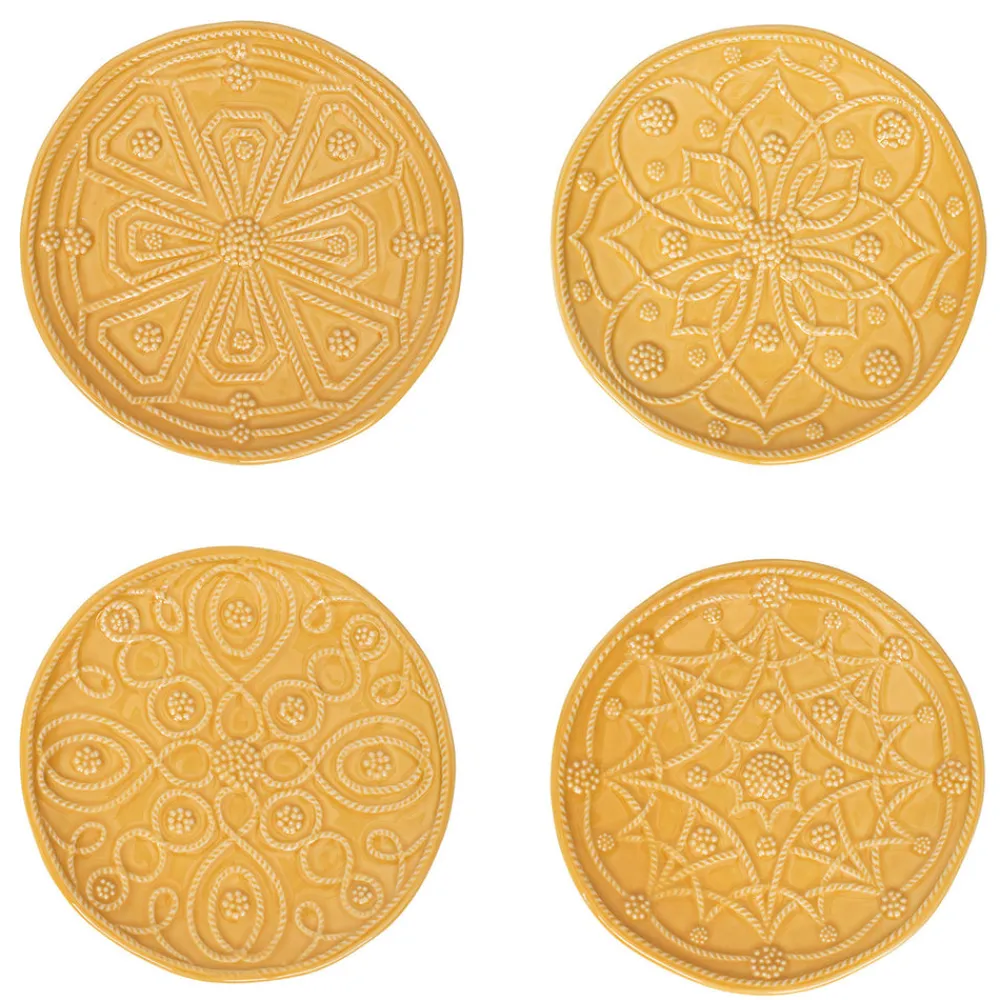 As newlyweds and self-proclaimed romantics, Capucine and David Gooding founded Juliska in 2001 with a small collection of mouth-blown Bohemian glasses. Today, it’s the tableware and home brand every good hostess needs to know. Lavish detailing of the iconic berries and threads on majestic shapes herald the Jardins Du Monde Side/Cocktail Plate Assorted in Daffodil, Set of 4. Each plate pays homage to four of the world’s most beautiful gardens, Landriana in Italy, Villandry in France, Alcazar in Spain, and Heligan in England, and is dressed up in a sunshine yellow glaze.