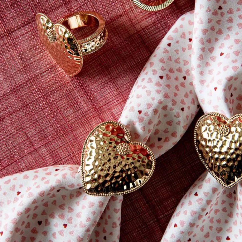 As newlyweds and self-proclaimed romantics, Capucine and David Gooding founded Juliska in 2001 with a small collection of mouth-blown Bohemian glasses. Add a gleaming accent (with a romantic design and hammered finish) to the dining table with the Berry & Thread Heart Napkin Ring, Set of 4 in Gold.