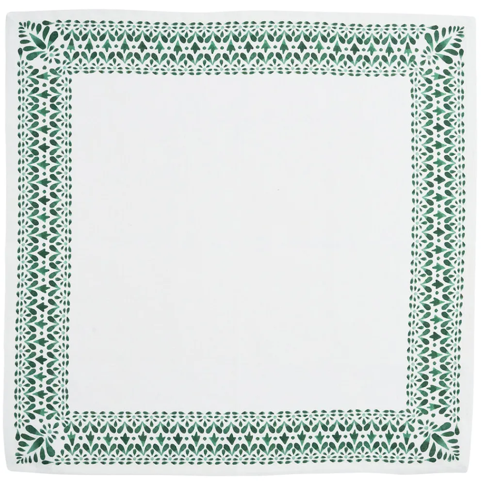 Set of four napkins. 100% linen. Evergreen border with Iberian motif. Suitable for formal and casual table settings.