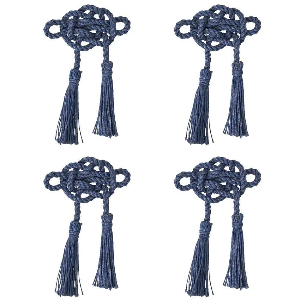 Set of 4. Handwoven braided napkin rings in rich navy. Inspired by the timeless mystic knot, each ring imparts both texture and narrative to table décor—beautiful alone or paired with linen and flatware.