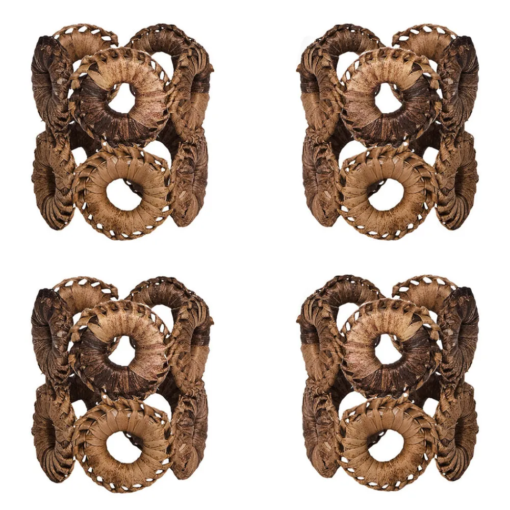 Set of four napkin rings. Handwoven abaca. Neutral finish for versatile styling.