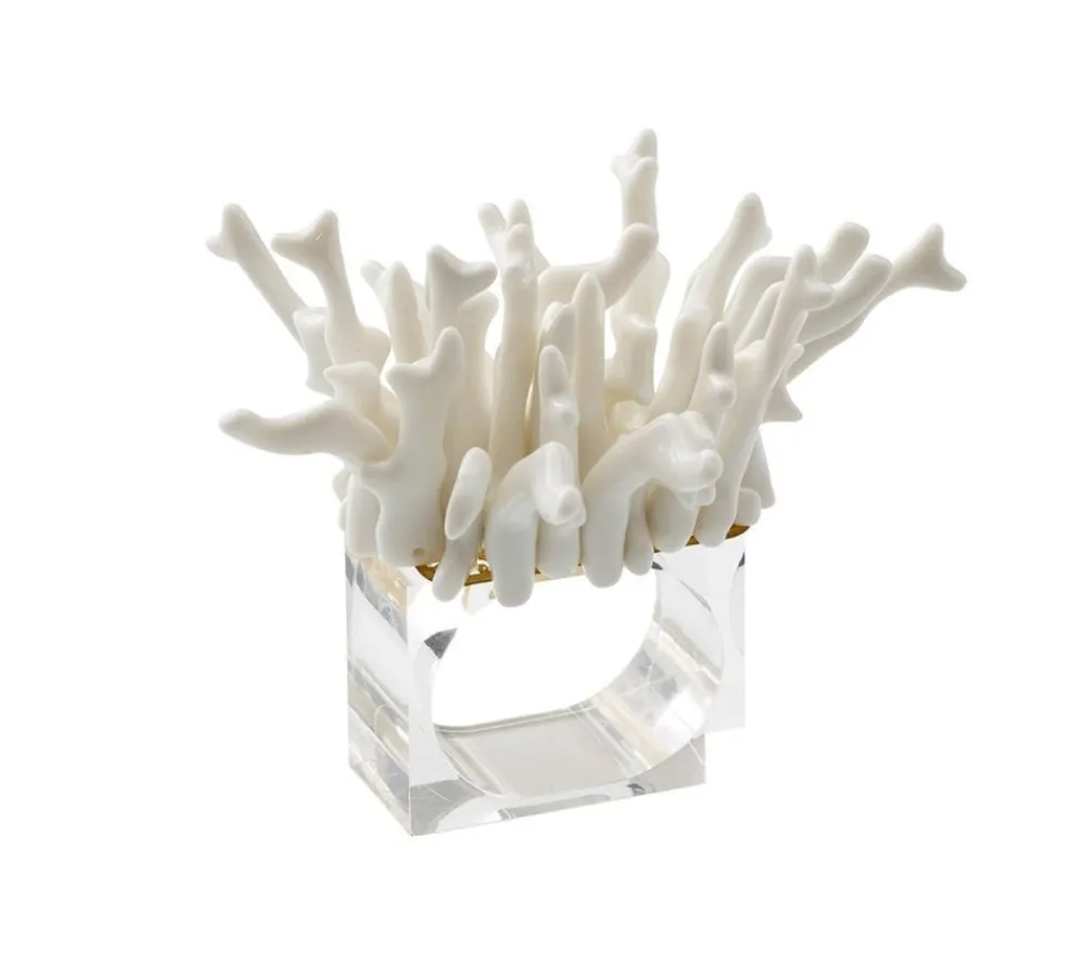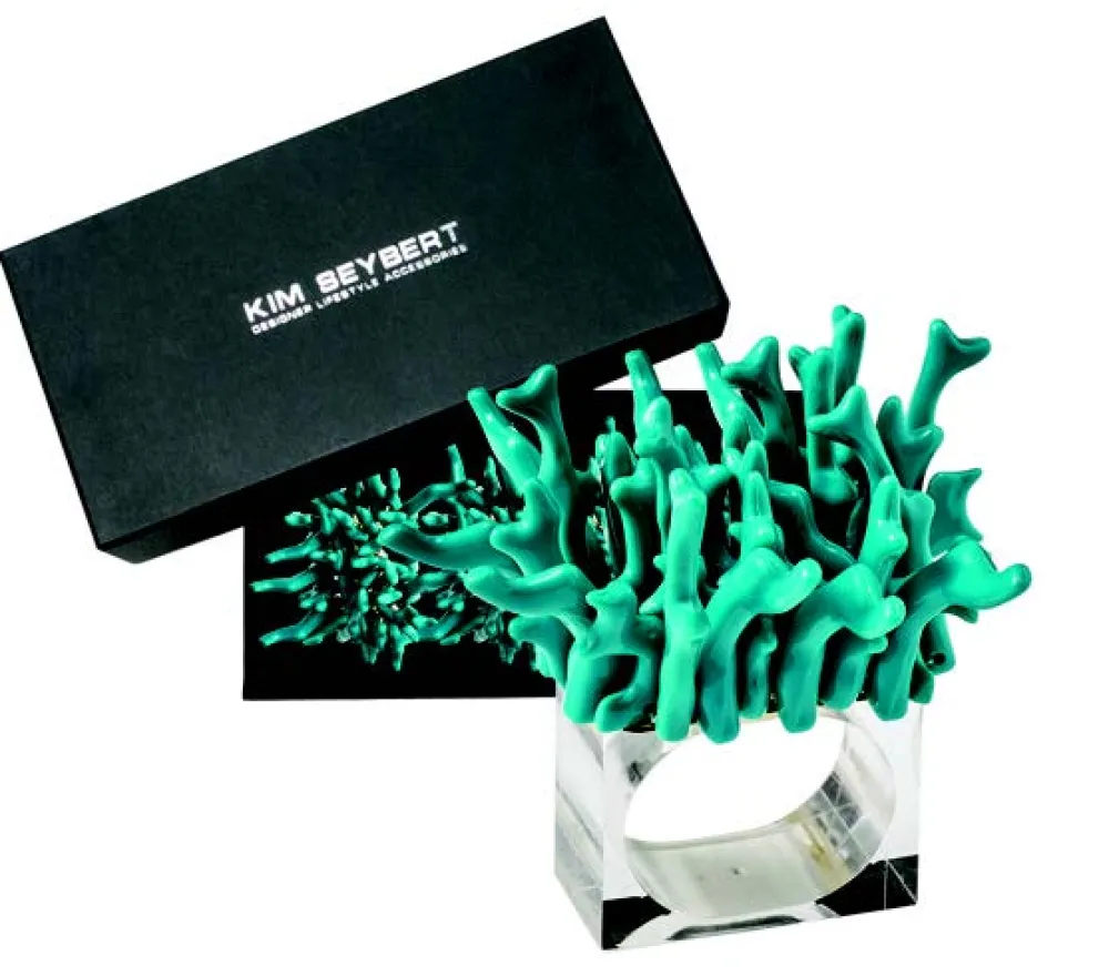 Kim Seybert designs artisan-made tabletop decor and luxury home accessories. Create a well-dressed dining look with the brand’s range of elegant tableware, placemats, runners, chargers, plates, napkins, flatware, and more. The Amalfi Napkin Ring, Set of 4 in Gift Box borrows it shape and colors from nature’s coral formations. Use the all-red version on each place setting or mix in the white and turquoise for a fun touch at your next poolside party. Available in red, white and, turquoise and are made from organically-shaped coral-like beads.
