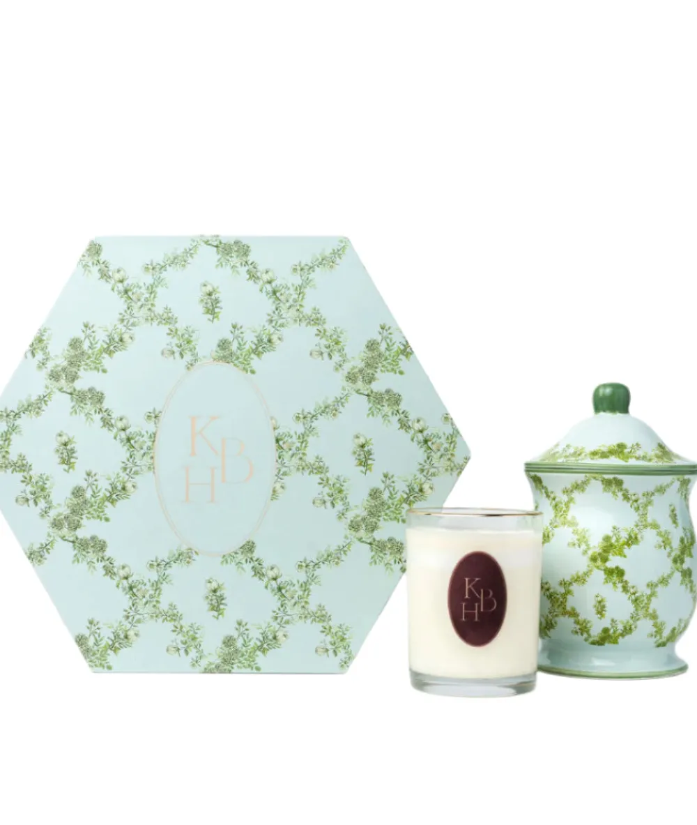 Kinderbrook Home is a labor of love born from founder Brooke Kennan’s passion for quality craftsmanship and timeless style. After decorating her family’s upstate retreat, Kinderbrook Farm, Brooke was inspired to create a line of heirloom-quality porcelain that captures the essence of traditional country living. Bring a sense of traditional charm into your urban home with The Manhattan. Featuring a versatile trellis print, this handcrafted porcelain vase and complementary signature candle evoke a lush garden retreat whether paired together or apart.