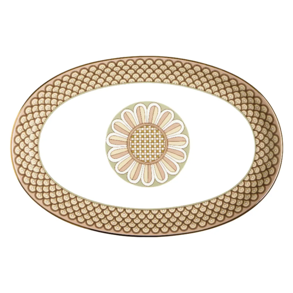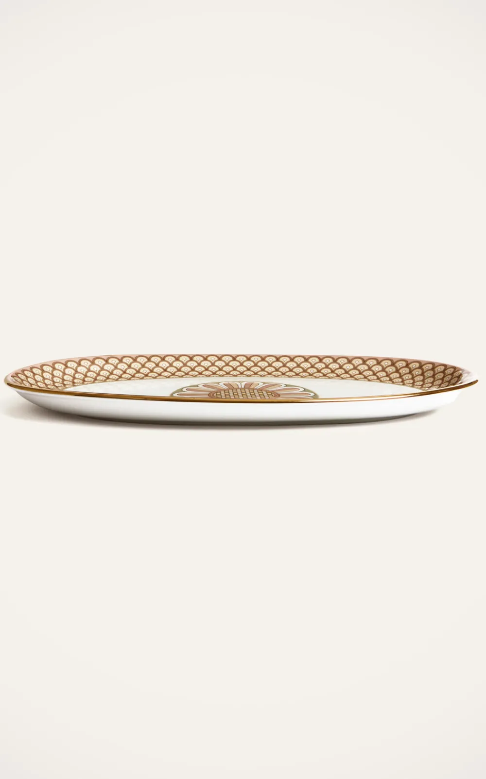 The inspiring authority on feel-good fashion, energy elevation, and the ebullient Italian way of life, La DoubleJ was launched in 2015 by J.J. Martin. Beginning as a magazine, the brand soon took flight in 2017 with original collections of new fashion and homeware with in eye-popping prints, cut with easy glamour. The Oval Platter in Odysseus Dusty Pink is crafted in collaboration with Italy’s most esteemed porcelain artisans and finished with hand-painted 18K gold trim. Designed for sharing, serving, and celebrating, this piece anchors any table with its rich Odysseus motif—whether at a family-style feast or aperitivo soirée.