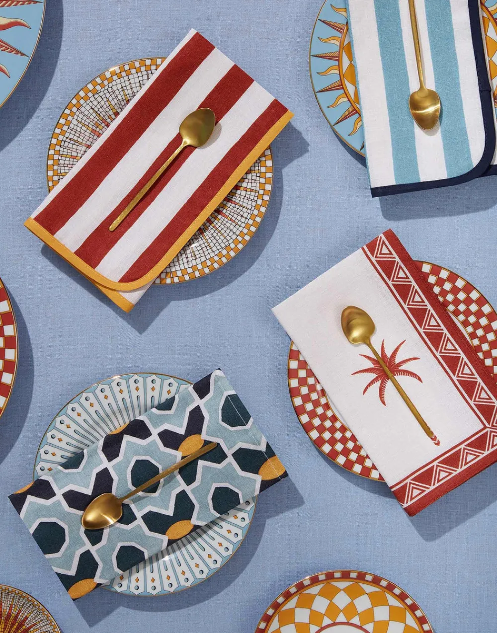 The inspiring authority on feel-good fashion, energy elevation, and the ebullient Italian way of life, La DoubleJ was launched in 2015 by J.J. Martin. Beginning as a magazine, the brand soon took flight in 2017 with original collections of new fashion and homeware with in eye-popping prints, cut with easy glamour. Ideal for a maximalist tablescape, the Large Napkins in Plaza Small Light Blue, Set of 2 features a Seville-inspired print in Italian linen. Mix and match with the brand’s patterned placemats and tablecloths, or liven up plain white.