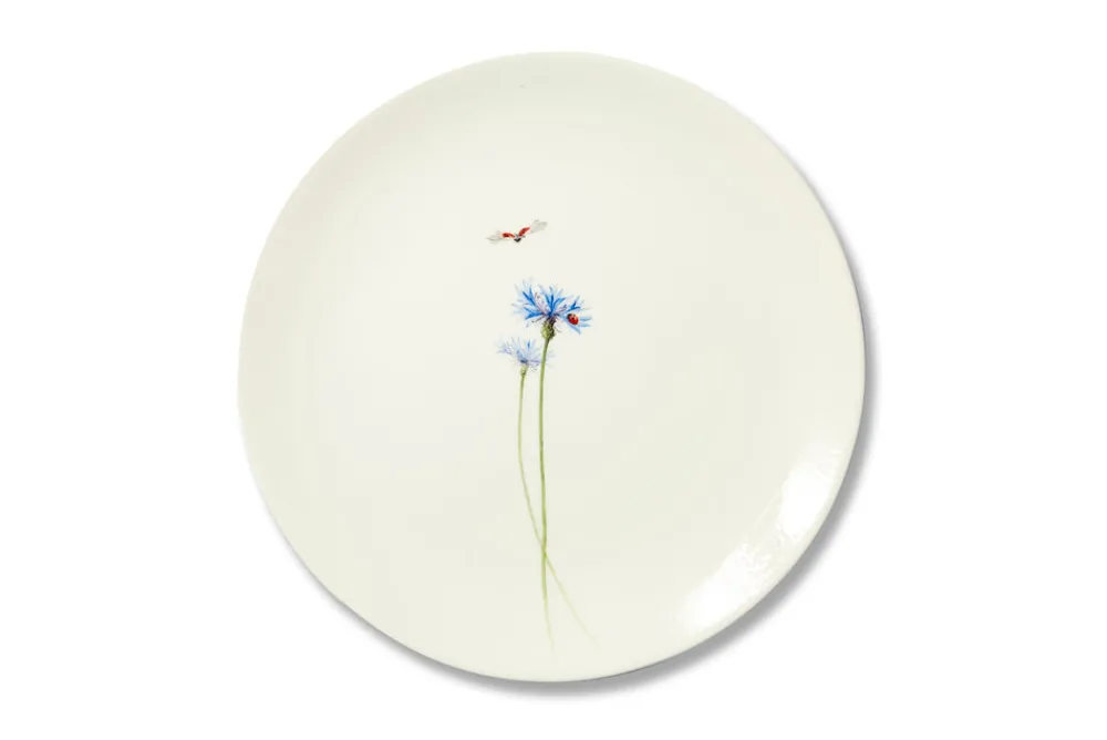 Entirely handcrafted and hand-decorated by artisans at the Milanese ceramic workshop Paravicini, Delicate and refined, these flat dishes will add an accent of sophistication to a modern dining set. The Bloom Collection is handcrafted of white thin ceramic, it features 12 different flowers and elegant butterflies fluttering around.