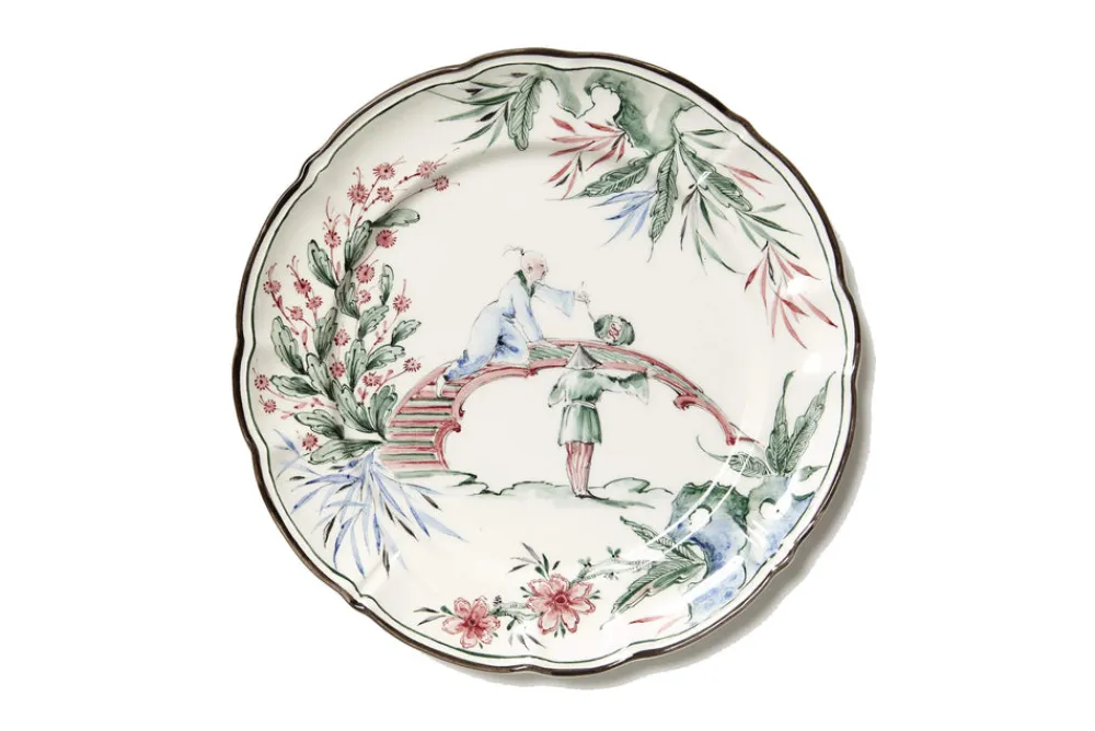 Entirely handcrafted and hand-decorated by artisans at the Milanese ceramic workshop Paravicini, this soup plate has a whimsical, Old-World feel. The detailed design features a lovely Chinoiserie scene in reds and greens.