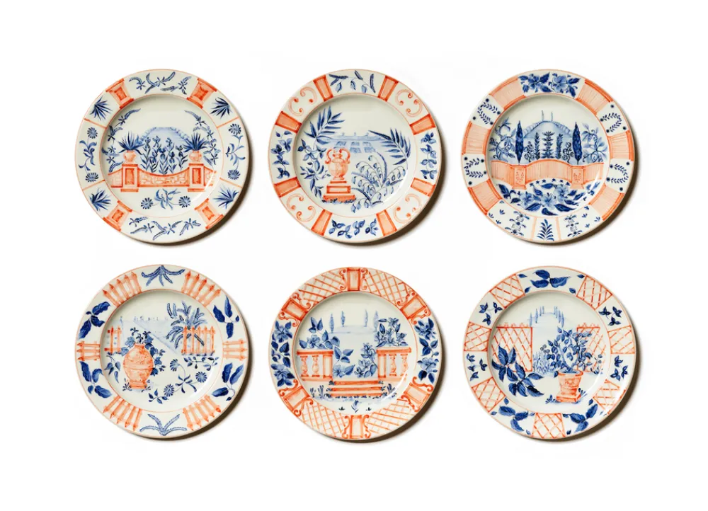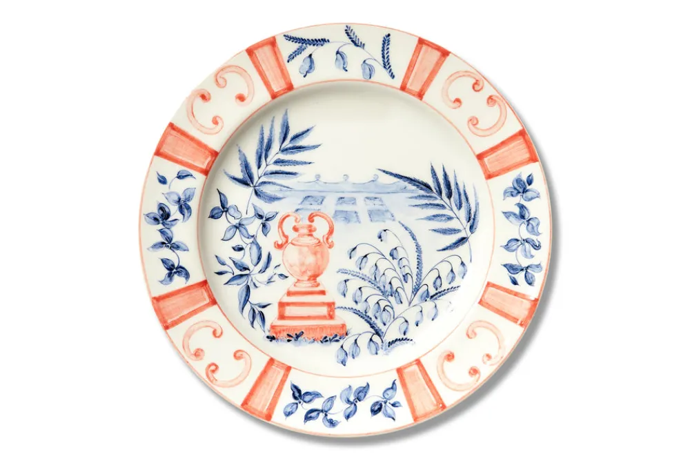 Founded by Costanza Paravicini, and taking inspiration from the classic tradition of fine Italian pottery, Laboratorio Paravicini seeks to create handmade tableware and plates as they were in long ago, but made today, for everyday use. Using a decoration technique called Gran Fuoco sulla Terraglia Bianca, the patterns under glaze emerge as uniquely bright and durable. The Italian Views Charger, Set of 6, looks out on to the rustic Italian countryside, featuring charming illustrations of the everyday, from a world away.