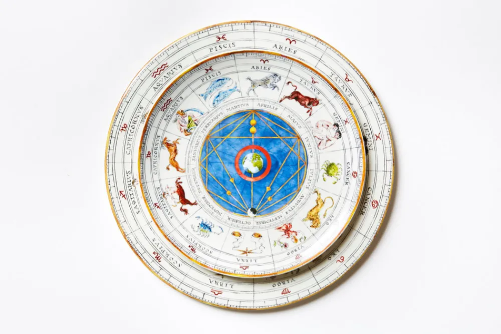 Each plate in the Laboratorio Paravicini Zodiac collection is handcrafted and hand-decorated by artisans at the family’s ceramic workshop in Milan. The Zodiac Oroscop Dinner Plate vividly showcases each astrological sign and month. And with a glossy finish and gilded edges, it will add sophistication to any modern place setting and is sure to be a conversation starter when you gather around the table.