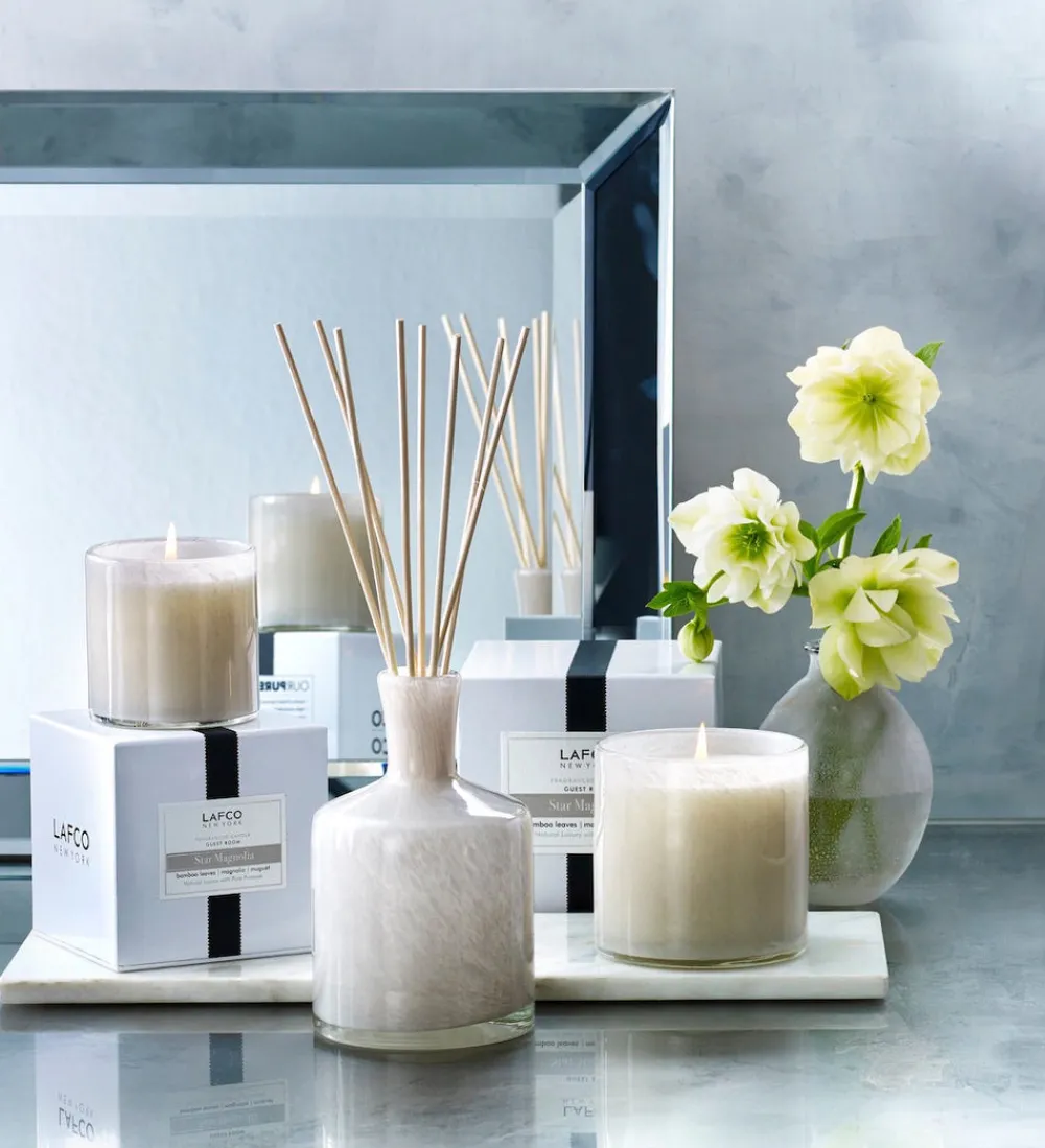 LAFCO (Luxury Articles and Fragrance Company) New York transforms everyday moments into powerful sensory journeys. Established in 1992 by world-renowned nose Jon Bresler, LAFCO transports his passion for the European tradition of botanical based fragrances to specialty candles, home goods, and uniquely formulated personal care products. Encased in hand-blown glass, the Star Magnolia Classic Candle features a guest house fragrance from the brand’s House and Home collection, transporting with notes of bamboo leaves, magnolia, and muguet .