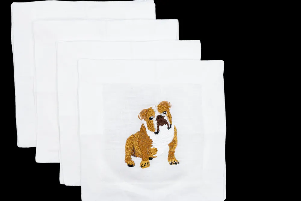 Embroidered with icons of pop and style, furry friends, and seasonal items, Lettermade cocktail napkins add sophistication and a touch of whimsy to any social setting. Stout, loyal, and adorable, the English Bulldog Cocktail Napkins bring the muscular, lovable pup to your next gathering of dog lovers.
