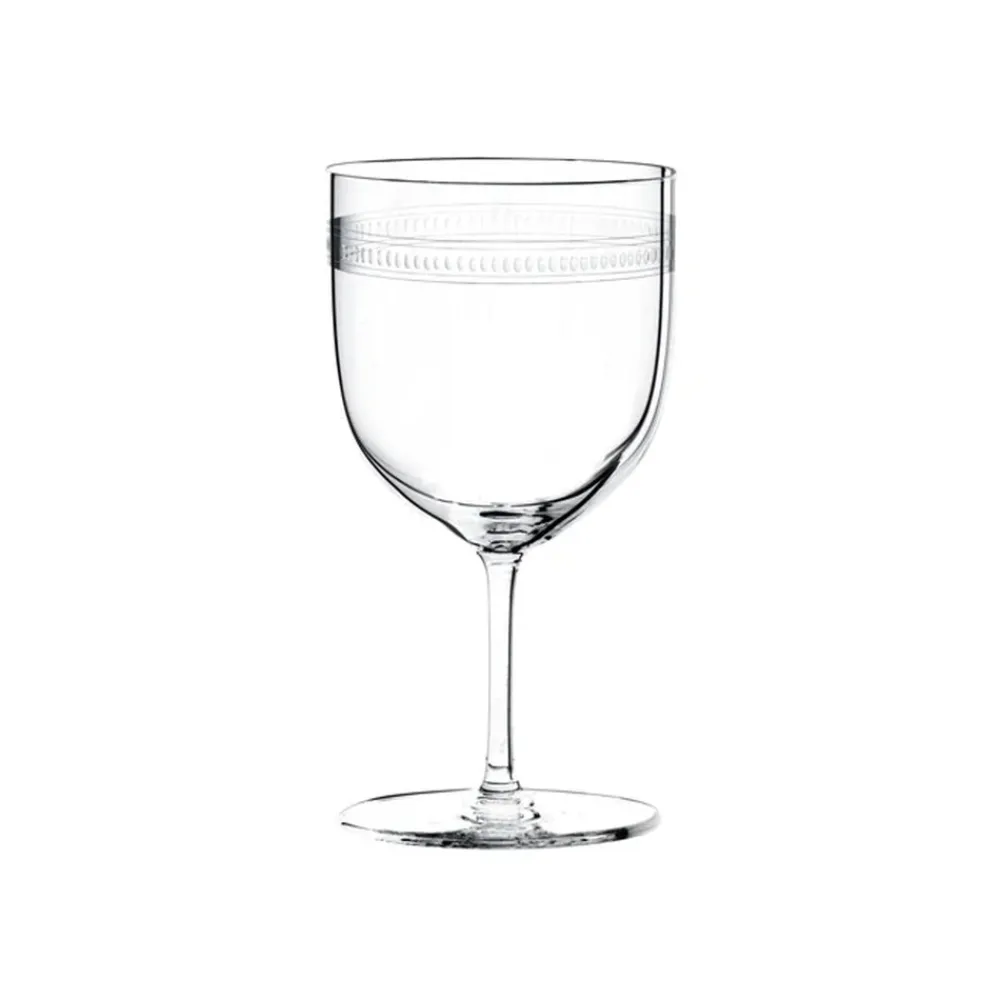 Hand-blown muslin crystal. Lead-free. Copper wheel–engraved pearl border. Made in Austria.